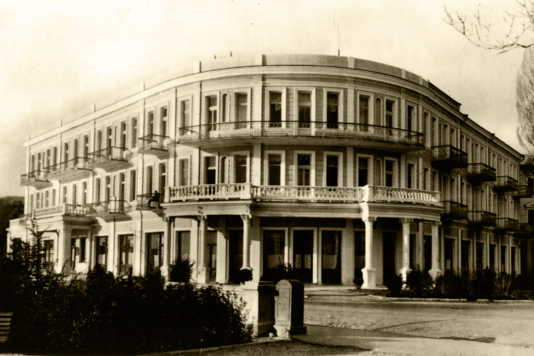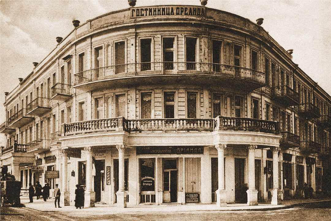 Гостиница «Россия»—теперь президент-отель «Таврида» — в 1875 годустала первым в городе фешенебельным заведением европейского уровня. Автором проекта был ялтинский архитектор Александр Винберг, руководил работами инженер полковник Аманд Струве совместно с военным инженером А.Л. Врангелем, а личными капиталами поучаствовала царская фамилия. Гостиница уже тогда имела свой газ, фонтаны, водопроводы под самую крышу. По расположению и значению для туристов она стала естественным центром всей Ялты: поблизости были живописный фруктовый базар, телеграф, присутственные места, лучшие дачи.