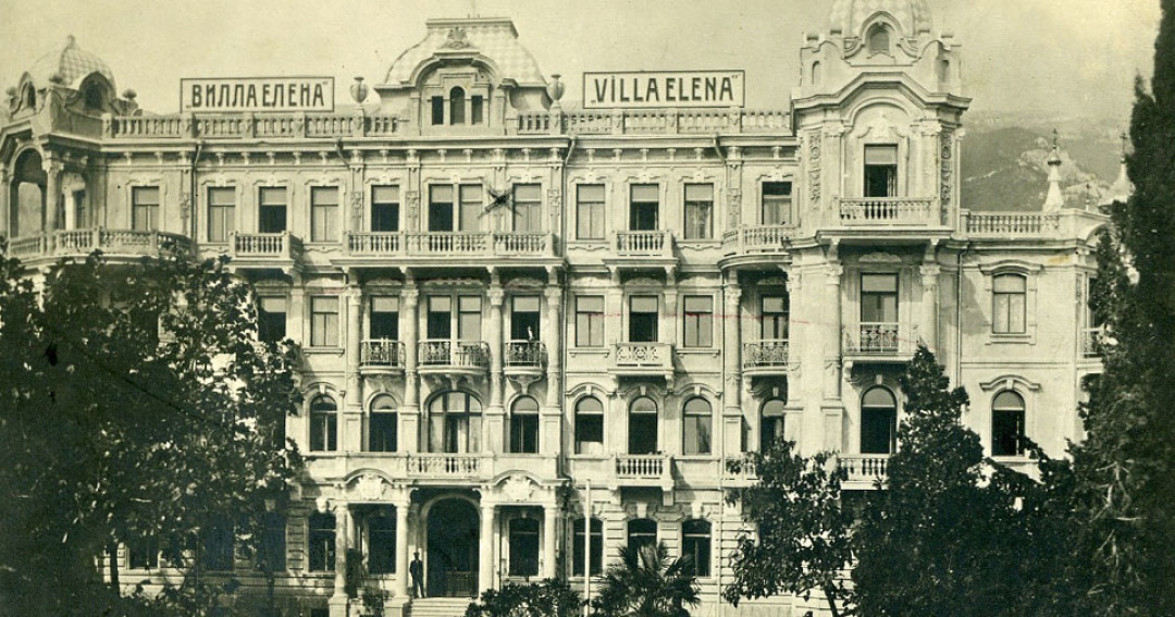 Еще одна гостиница, сохранившая свою историю и облик до наших дней,— «Вилла Елена».Богатый саратовский купец Иван Тихомиров заказал этот проект, чтобы передать его дочери Елене в приданое. Через год после открытия в «Путеводителе по Крыму» гостиница описывалась так:«Четырехэтажное здание построено в 1912 году по проекту архитектора Л.Н. Шаповалова в стиле модерн. Устроена по образцу лучших заграничных отелей, со всеми новейшими усовершенствованиями и удобствами, не имеющимися в других гостиницах Ялты, как: подъемная машина, центральное водяное отопление, в каждом номере проведена вода, обширная терраса с великолепным видом на море и горы, гостиная, читальня, ванны. Все номера с балконами обращены на юг и выходят в большой декоративный сад. Благодаря прекрасному местоположению гостиница удалена от городского шума, пыли иветров. Первоклассный ресторан. Номера отдаются посуточно и помесячно. Цены умеренные».