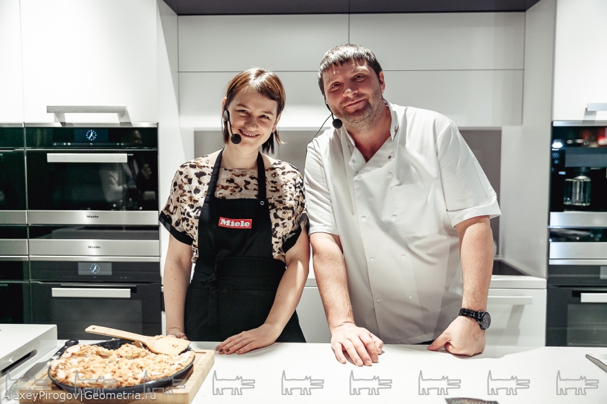 Параллельно гости мероприятия наблюдали пошаговый мастер-класс Юлии Коган (Кондитория). Ароматный немецкий пирог с яблоками по домашнему рецепту в исполнении основательницы одной из лучших кондитерских в России стал одним из главных героев программы.
