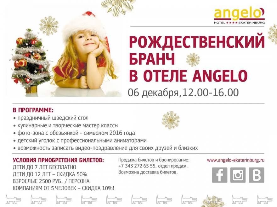angelo отель Екатеринбург предлагает своим гостям расслабиться и провести воскресный день всей семьей на традиционном Рождественском бранче. По традиции вас ожидает welcome-drink и щедрый праздничный шведский стол от команды поваров angelo.
