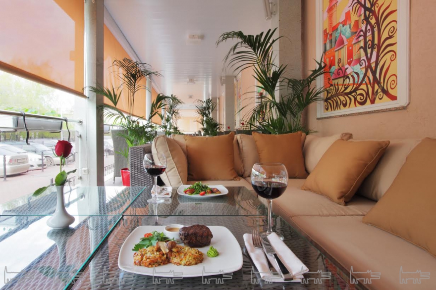 Гости в разгар рабочего дня с удовольствием обедают на веранде на свежем воздухе. Располагайтесь, здесь все создано для Вашего отдыха! Уютная атмосфера, респектабельная и комфортная обстановка, живые цветы - наверняка, придутся Вам по душе. …Вечером здесь зажигаются огни, звучит ненавязчивая музыка, и хочется, чтобы время остановилось.