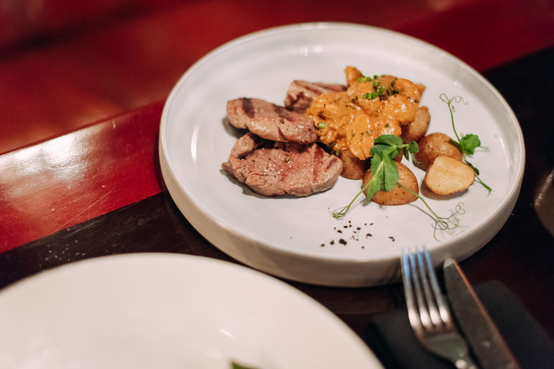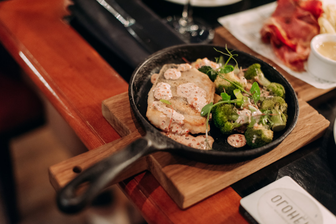 Закуски – самая популярная категория в любом баре, но в новой концепции меню «Огонька» акцент сделан на горячие блюда. «Утиная грудка в малиновом соусе с фасолью и ежевикой», «Медальоны из телятины с масала из шампиньонов», «Пастрами на гриле с овощами – шеф рекомендует попробовать в первую очередь гостям, которые предпочитают мясо.
