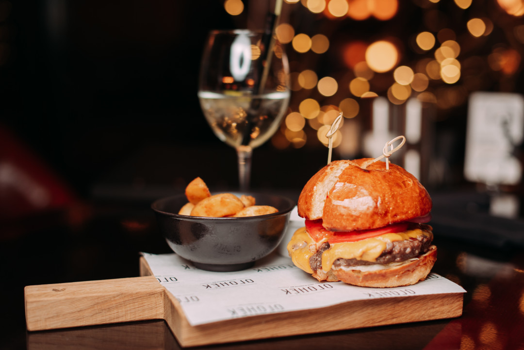 Совершенно новый рецепт у «Фирменного бургера Огонек» - на новой булочке с котлетой из мраморной телятины и копченым салом, с остро-сладким соусом с моченой клюквой - настоящий шедевр, как говорится в рекламном ролике, который сняли по этому случаю.