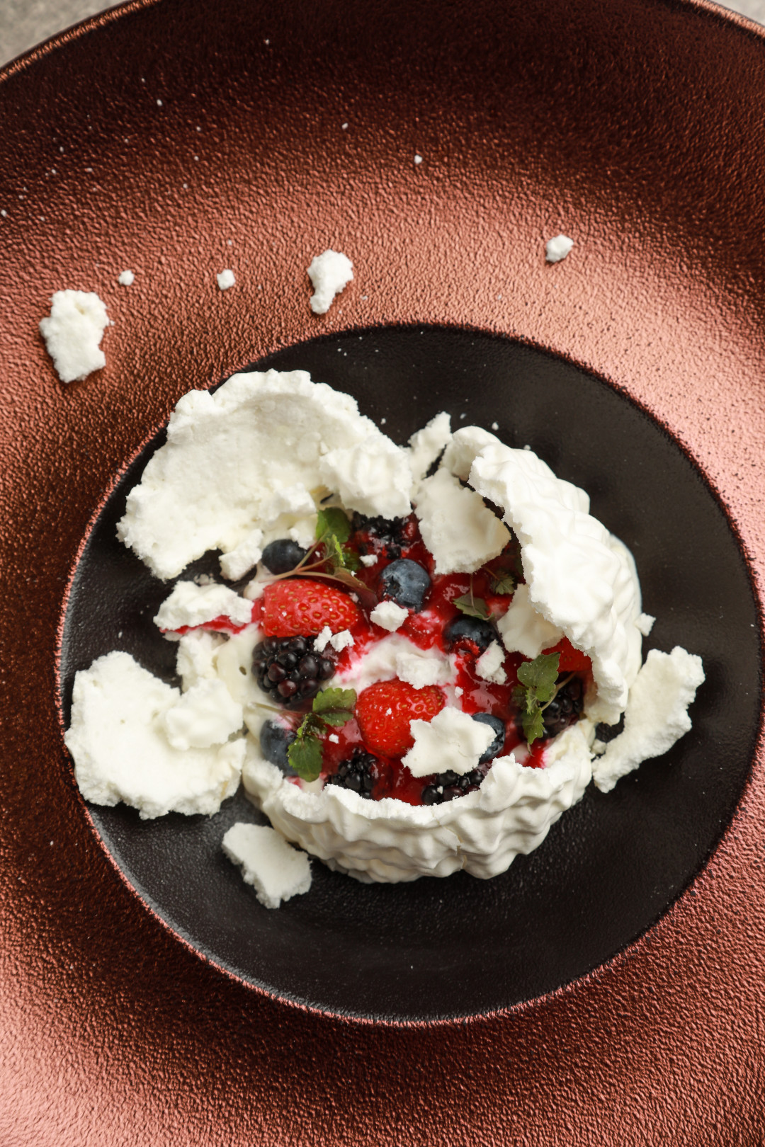 Два новых салата - с телятиной в тайском стиле и из говяжей вырезки с томатами в соево-имбирном соусе – выделяются своим пряными и немного острыми вкусами, которые прекрасно сочетаются с мясом. Летние десерты: «Шоколадный капкейк» и «Ванильная панакота», а также две новые разработки: «Черничный купол» и классическая «Павлова» с шоу подачей - дополнили десертную карту.