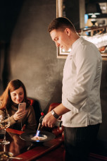«В своём представлении блюд я стремлюсь к простоте - делится шеф-повар – минимум основных ингредиентов с выраженными вкусами, которые дополняют и раскрывают друг друга. Я использую естественные маринады, которые подчеркивают или усиливают вкус продукта. Основываясь на этом простом подходе, я создал новые сочетания ингредиентов в блюдах и интерпретировал на свой манер существующие рецепты».
