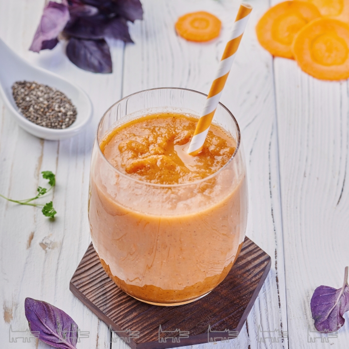 Осенью наш организм нуждается в полезных витаминах и минералах. Восполнить их запас очень просто: выпить стакан вкусного смузи с утра — он взбодрит и подарит хорошее настроение! Для укрепления иммунитета попробуйте смузи «Иммунный заряд», который содержит более 100% суточной нормы бета-каротина и витамина С. Чтобы его приготовить, вам понадобятся следующие ингредиенты: