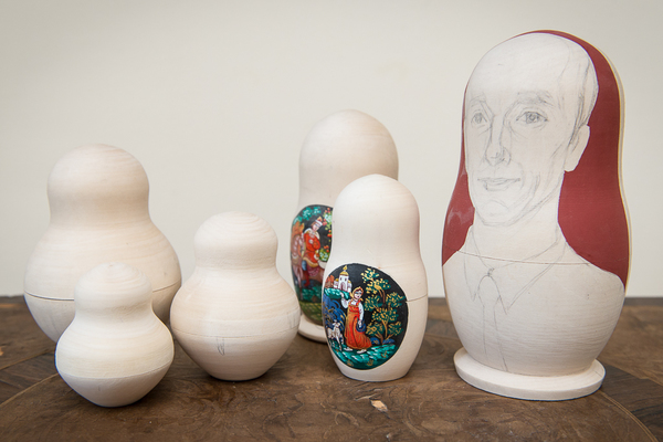 Портретная матрешка рисуется обычно по фотографии. Эскиз наносится карандашом, а потом раскрашиваются водорастворимыми красками, той же гуашью, например. Политические матрешки сначала хорошо расходились, а потом как-то приелись. Нашим не нужны, а туристы на изображения чужого президента смотрят прохладно, берут традиционный фольклор.