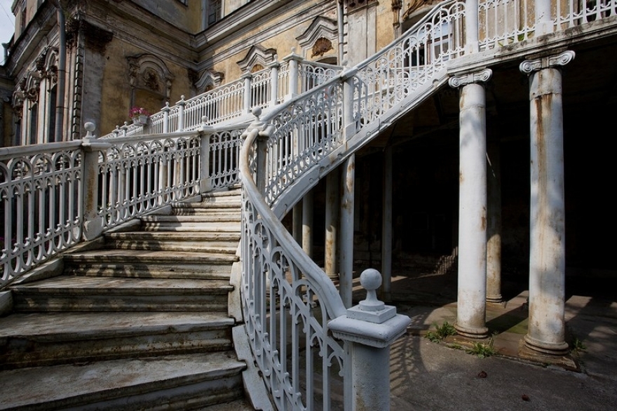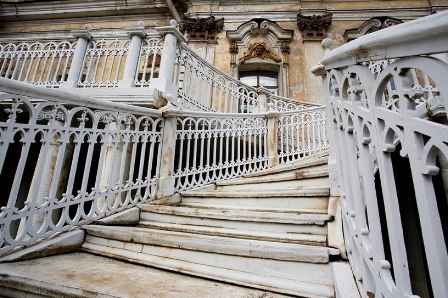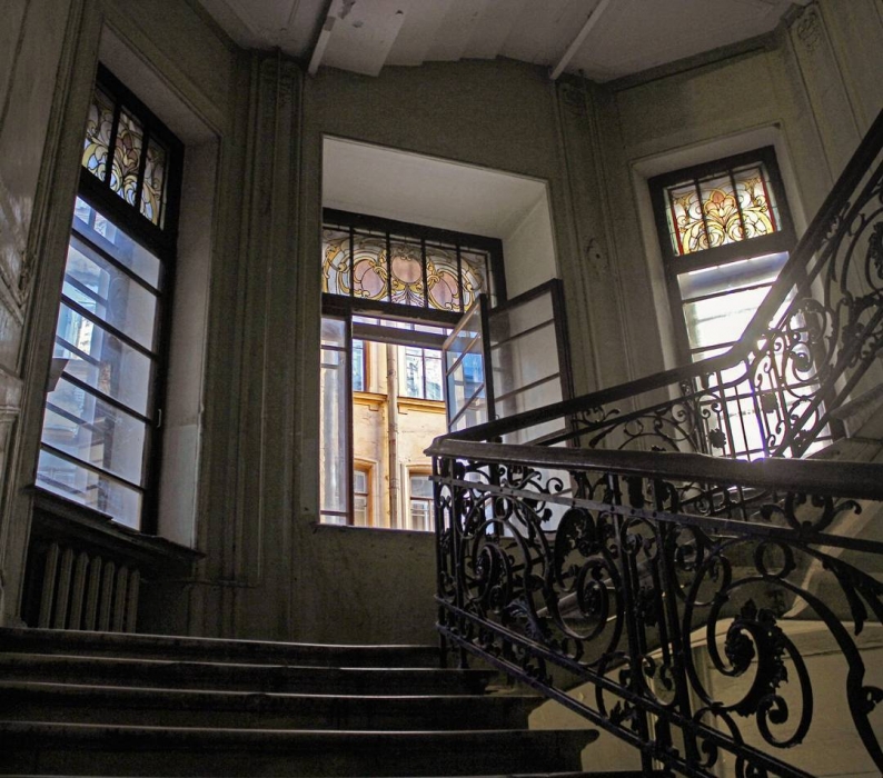 Городская усадьба Демидовых пер., Гривцова 1 Одна из немногих дошедших до наших дней городских усадеб XVIII века. Главным напоминанием о владельцах – «хозяевах Урала» — является кружевная лестница-веранда. Ведущая из яблоневого сада к бельэтажу особняка, она отлита в чугуне по технологии, не известной современным инженерам. Чугунные маскароны на оконных наличниках по легенде имеют портретное сходство с членами семьи. Здание успело побывать и детским садом, и даже центром противодействию промышленному шпионажу, а теперь его занимают проектные институты: вход закрыт для посторонних, но нам удалось сфотографировать. |