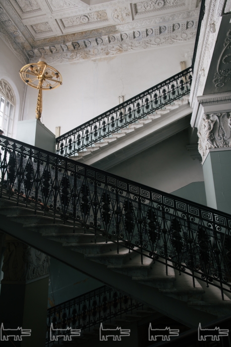 Дворец Культуры завода Красный Выборжец Свердловская наб. 12 ДК со следами пожара и протечек в одном из заводских районов Петербурга, пустующий уже долгие годы, но по старой привычке «поющий гимн колоннам». Песнопения выдержаны в стилистике «сталинского ампира» и вполне себе монументальны. Установить архитектора, и точную дату постройки сегодня достаточно проблематично. Внешне здание ДК ничем не примечательно, даже скромно, ничего в его внешнем виде не выдает поистине имперских интерьеров. Можно предположить, что строительство началось в послевоенные годы «сталинского ампира» — доказательством тому служат помпезные залы. |