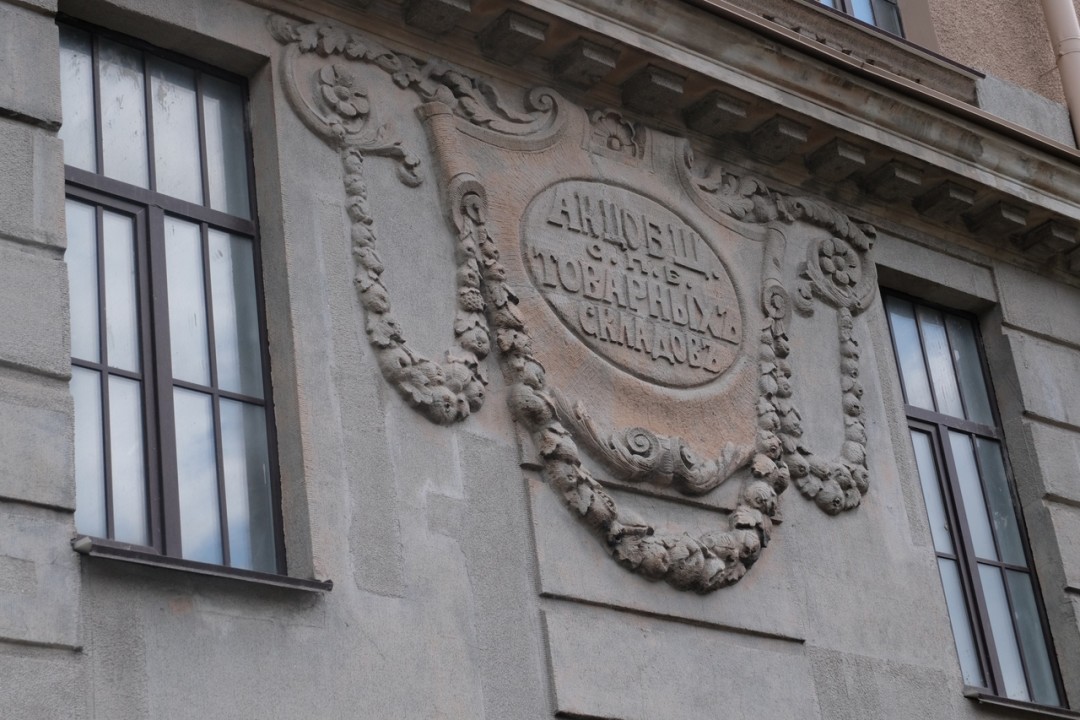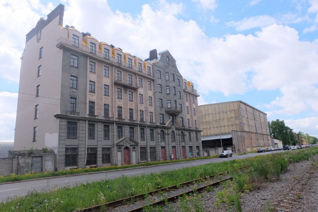 Это необычное здание близ станции метро «Московские ворота» было возведено для конторы «Санкт-Петербургского общества товарных складов» – фирмы, которая в начале ХХ столетия всерьез рассчитывала стать монополистом на рынке хранения товаров, прежде всего муки и зерна. Собственно, склады разных типов находились неподалеку. А в самом здании кроме офисов размещалась купеческая гостиница и буфет (строго без спиртных напитков). На фасаде до сих пор сохранилась оригинальная вывеска с логотипом первых владельцев – «Акц. Общ. СПб товарных складов».