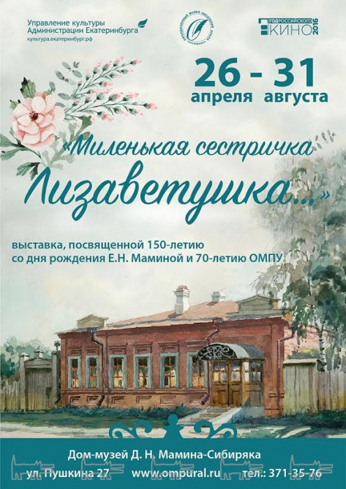 26 апреля в 16.00Дом-музей Д. Н. Мамина-Сибиряка открывает выставку, посвящённую 150-летию со дня рождения сестры писателя, Е. Н. Маминой-Удинцевой и 70-летию Объединённого музея писателей Урала.