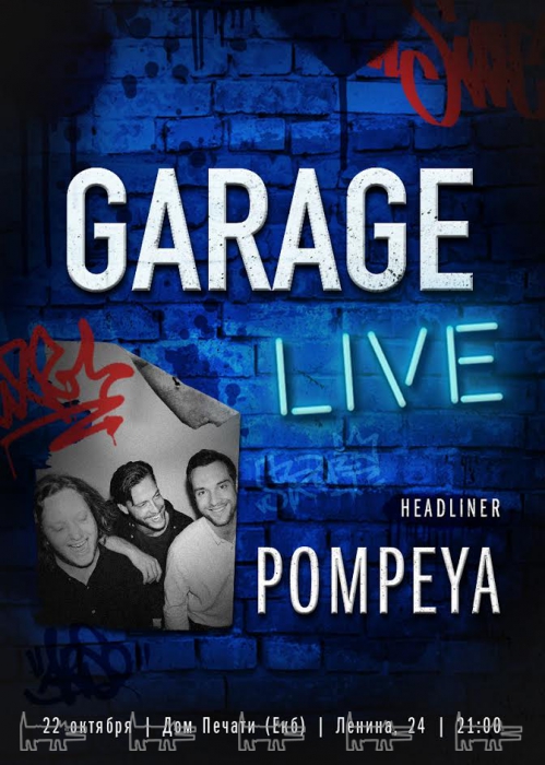 Возглавит музыкальное событие главная нью-вейв-группа, прославившаяся и за пределами страны, Pompeya. О них уже сложно сказать — это группа из Москвы или из Лос-Анджелеса? И там и там их принимают как родных. Парни уже несколько лет находятся в постоянных гастролях на Западном побережье США, в Латинской Америке и Европе. Приезжая в столицу России, дают по два концерта подряд, на которые с трудом можно достать билеты. Только ради концерта на серии вечеринок Ballantine’s Garage Live музыканты выкроили время в плотном гастрольном графике и представят публике результаты своих трудов на лос-анджелесском инди-лейбле Mishu (No Shame).