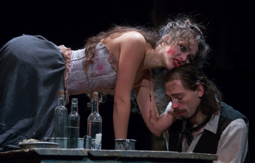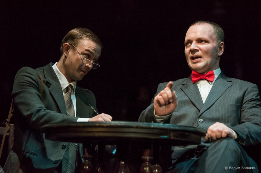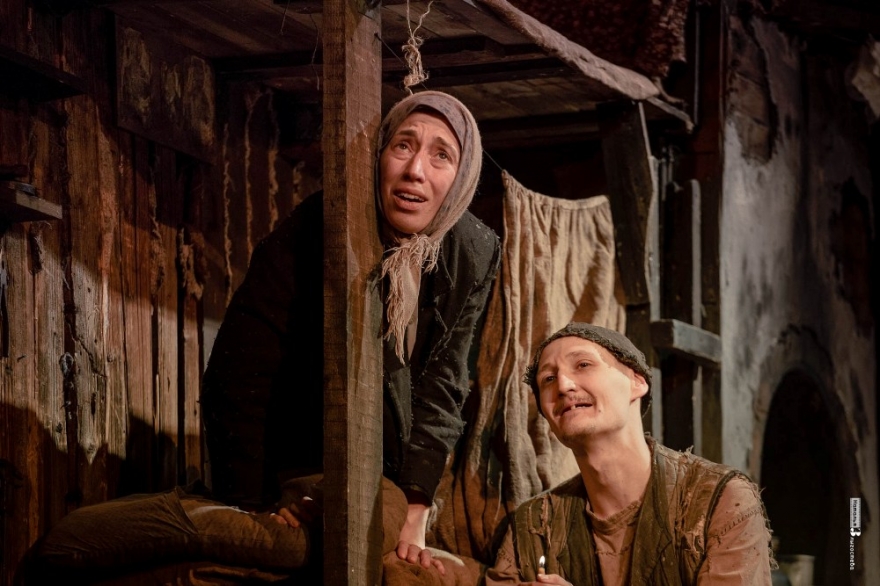 «На дне», М. Горький. Спектакль – обладатель ГРАН-ПРИ фестиваля «ЗОЛОТОЙ ВИТЯЗЬ»-2014. Главное потрясение от спектакля – это та самая горьковская ночлежка, воспроизведенная Сергеем Федотовым с присущей ему тщательностью проработки всех деталей. Старинные фотографии как бы «оживают», актеры не играют, они действительно живут на сцене, даже не живут, они священнодействуют, гипнотизируют, вовлекают в «спиритический» сеанс, утягивают зрителя в иное магическое пространство. Так играть умеют только артисты «У Моста». Прекрасная и тонкая игра актеров с первых же минут втягивает в достовернейшую атмосферу ночлежки. Спектакль поражает смелыми открытиями, неожиданными решениями образов и вызывает очень светлые чувства. Потому что все эти забытые Богом «бывшие люди» также верят в свою мечту, также балагурят, веселятся и радуются любой возможности счастья.