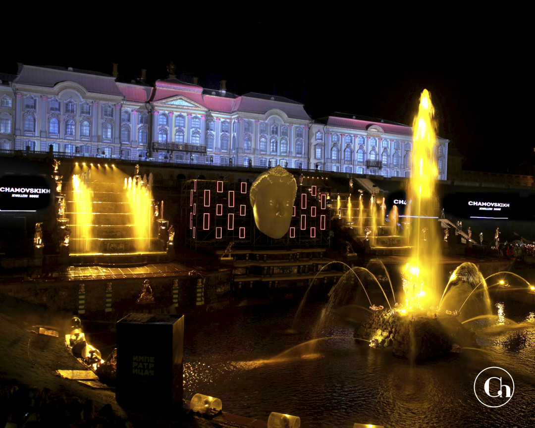 Ювелирный дом CHAMOVSKIKH выступил спонсором грандиозного Осеннего праздника фонтанов Петергофа – самого масштабного за всю историю проведения. Главным действием праздника стал мультимедийный спектакль «Императрица-2019». На фасаде Большого петергофского дворца и Большом каскаде развернулась история жизни и правления Екатерины II, ведь в этом году отмечается 290 лет со дня ее рождения. Площадь 3D-мэппинга составила 2000 квадратных метров, еще более эффектным его сделали световое шоу и масштабный яркий фейерверк. А драгоценности CHAMOVSKIKH украсили праздничный прием для друзей Петергофа.