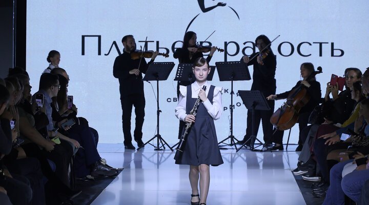 Уникальный модный показ прошел в Екатеринбурге 7 ноября. Юные модели вышли на подиум с музыкальными инструментами под живое звучание Струнного квартета Уральского молодежного оркестра.