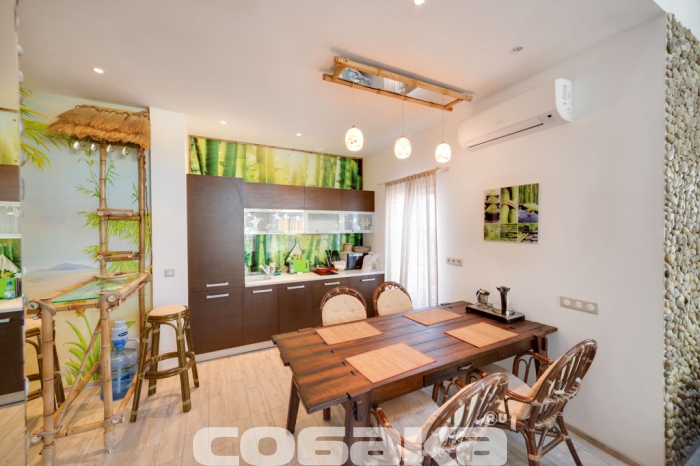 С некоторыми сложностями пришлось столкнуться в процессе отделки внутреннего пространства – например, найти мастеров, изготавливающих мебель из бамбука по индивидуальному заказу, оказалось не так-то просто. Впрочем, оптимистично настроенный и общительный Сергей обзвонил знакомых, и через «третьи руки» вышел на нужных умельцев.