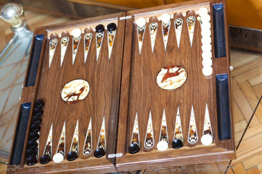 Один из самых важных элементов в гостиной красуется под потолком – это венецианская люстра. Двери привезены на заказ из Франции. Их особенность в том, что они выполнены из настоящей мозаики. На стенах – несколько ярких акцентов – картины. Одна из них – репродукция "Моны Лизы", которой более ста лет, вторая – еще старше первой. Вечерами мы с мужем любим поиграть в нарды, которые выполнены из мореного дуба с вставками янтаря.