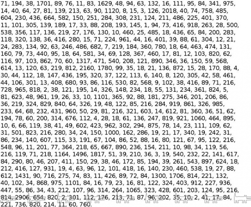 Два документа с закодированными сообщениями были найдены в карманах безработного американца Рикки Маккормика, погибшего при загадочных обстоятельствах. Тело Рикки обнаружили на кукурузном поле, довольно далеко от дома мужчины. Причину смерти не смогли определить, и лишь спустя 12 лет после происшествия ФБР признало, что Маккормик был убит. Тогда же были обнародованы данные о зашифрованных записках. Странные сообщения, состоящие из букв, цифр и скобок, предположительно могут помочь в расследовании таинственного дела. ФБР даже предложило всем желающим поучаствовать в расшифровке криптограмм и выложило их в интернет. Пока никто не подобрал ключ к шифру, но, быть может, однажды его тайна все же будет раскрыта?