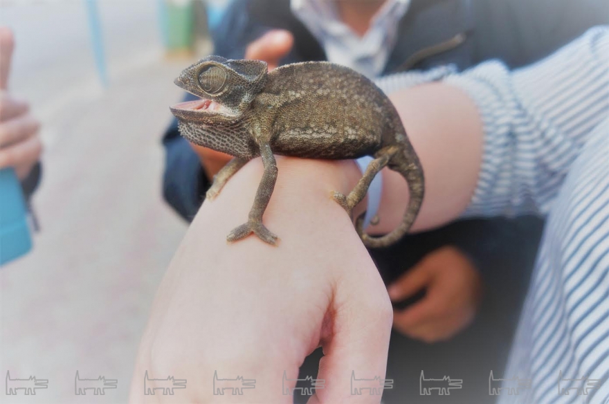 В шесть утра мы оставили сине-белые интерьеры Radisson Blu Ulysse Resort & Thalasso Djerba 5*, чтобы успеть без очередей проскользнуть на паромный причал острова Джерба. Но и с утра тут уже скопилась небольшая пробка. Пока автобус медленно продвигался к месту погрузки, обслуживающие пристань бесплатно познакомили нас с местным хамелеоном и вполне добродушно позировали в рабочих одеждах перед камерой профессионального фотокора.