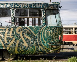 Художник-каллиграф расписал трамвай в рамках фестиваля уличного искусства STENOGRAFFIA.