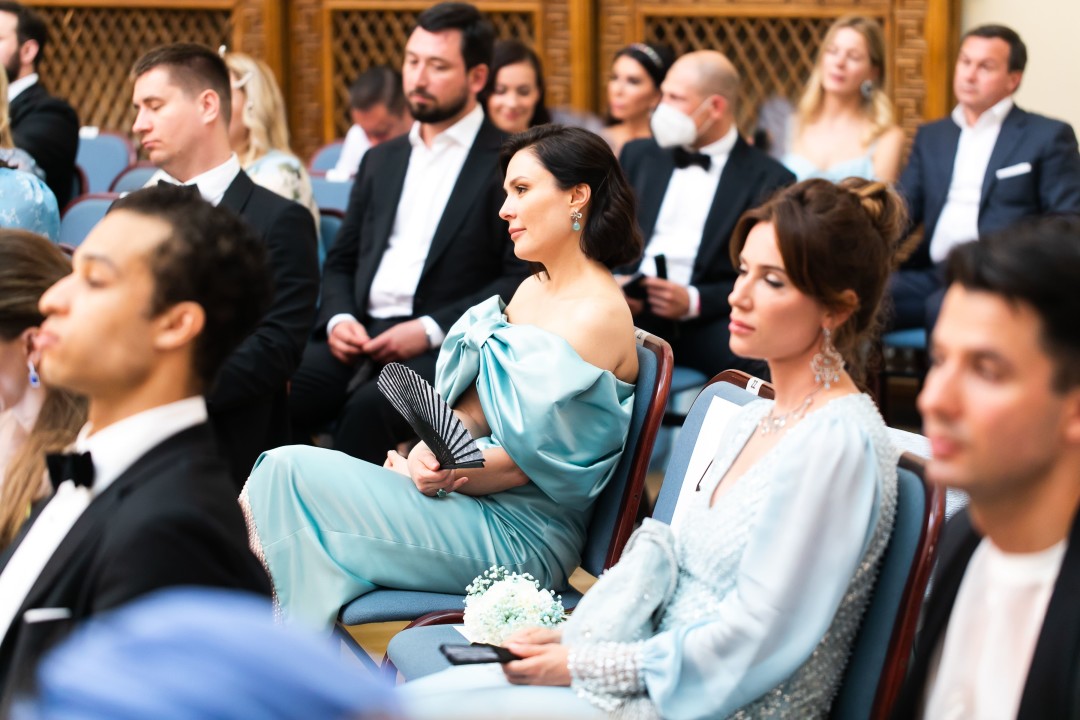 В соответствии с выбранной темой мероприятия, дресс-код состоял из знаковых элементов эпохи Дягилевских «Русских сезонов», гремевших в Европе в начале XX века. Нежные туалеты небесно-голубого и мятного цветов, отделка жемчугом и кружевом и, конечно, изящные тиары, броши, колье и серьги из коллекции Couture ювелирного дома AXENOFF.