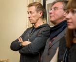 На минувшей неделе во дворце великого князя Владимира Александровича, а ныне Доме Ученых состоялась выставка работ Виктории Буйвид, Натальи Жерновской, Валерия Кацубы, Владислава Мамышева -Монро, Беллы Матвеевой, Александра Новикова, Андрея Саматуги Анны Студениковой, Дмитрия Сироткина, Евгения Сорокина, Ольги Тобрелутс, посвященная художнику Юрию Виноградову. Белла Матвеева изобразала его в своих живописных работах из серии «Кукольный дом»; Ольга Тобрелутс в проекте «Кесарь и Галилеянин», выполненном в смешанной технике; в серии Виктории Буйвид «Корпоративный сон» Юрий Виноградов был тем, с кого художники писали главных героев. Кроме того он сам по себе стал героем повествовательной графики «Харчевня «Шесть Форелей» Владислава Мамышева-Монро, а также вдохновил и всячески поддерживал в работе над проектом «Времена года. Мои друзья» фотографа Валерия Кацубу.