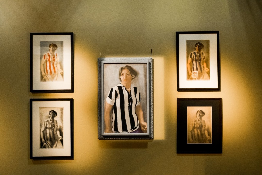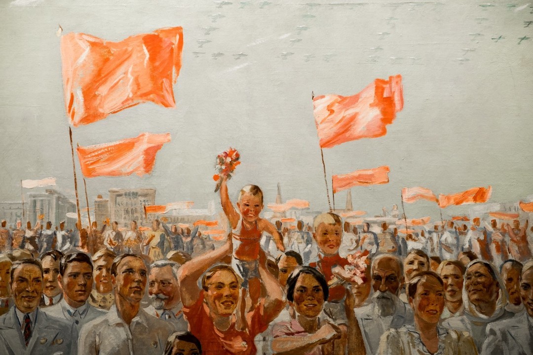 Ради этой выставки можно и в очереди постоять — фантазийное футбольное противостояние двух художников, проходящих по разделу «соцреализм», счет которого каждый зритель с удивлением установит для себя самостоятельно. Совместное творение куратора Семена Михайловского и архитектора Антона Горланова не только стало самым заметным арт-событием петербургской зимы, но и удостоилось объемного текста на страницах New York Times — то есть манежная выставка официально — международного масштаба. «Иконостас» знаменитых «девушек в футболке» Самохвалова и «метростроевок» перемежается с нежными, иконописными женскими портретами, а марширующие все в белом стахановцы Дейнеки неожиданно соседствуют с лиричными и «безыдейными» картинами, напоминающими Макса Эрнста.