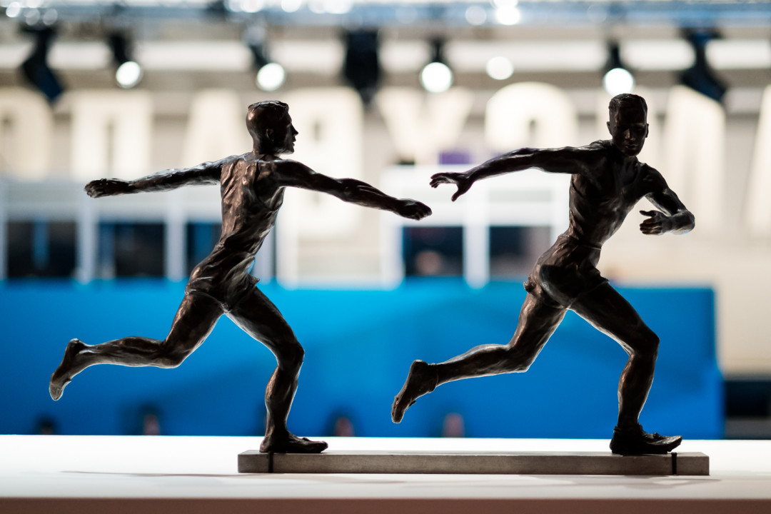 Она возникла сразу же. Тема спорта у обоих художников большая, и тут есть очевидные маркеры: Ленинград и Москва, а также необходимость показать, что Самохвалов такой же значительный художник, как Дейнека. По общим прогнозам победить должен был однозначно Дейнека, но все оказалось совсем не так — многие ожидаемые ощущения испарились после открытия. Секции придумались сами, естественно: «Спорт», «Труд», «Герои», «Тело», «Дети», «Война» и «Мир». Нужно было, чтобы человек пошел смотреть вещи в определенном настроении, и его нужно было смоделировать. А секции отлично маркируют блок и отыгрывают традиционную музейную концепцию. Например, метафору футбола понимают все, она в крови, даже у тех, кто не болеет. К тому же это и образ времени, советский футбол — практически ровесник СССР, матчи проводились с 1924 года. И да, эта выставка не про художников, а скорее про эпоху, про те сорок творческих лет, в которые работали и Дейнека, и Самохвалов. И как одна из тем времени — соревнование.