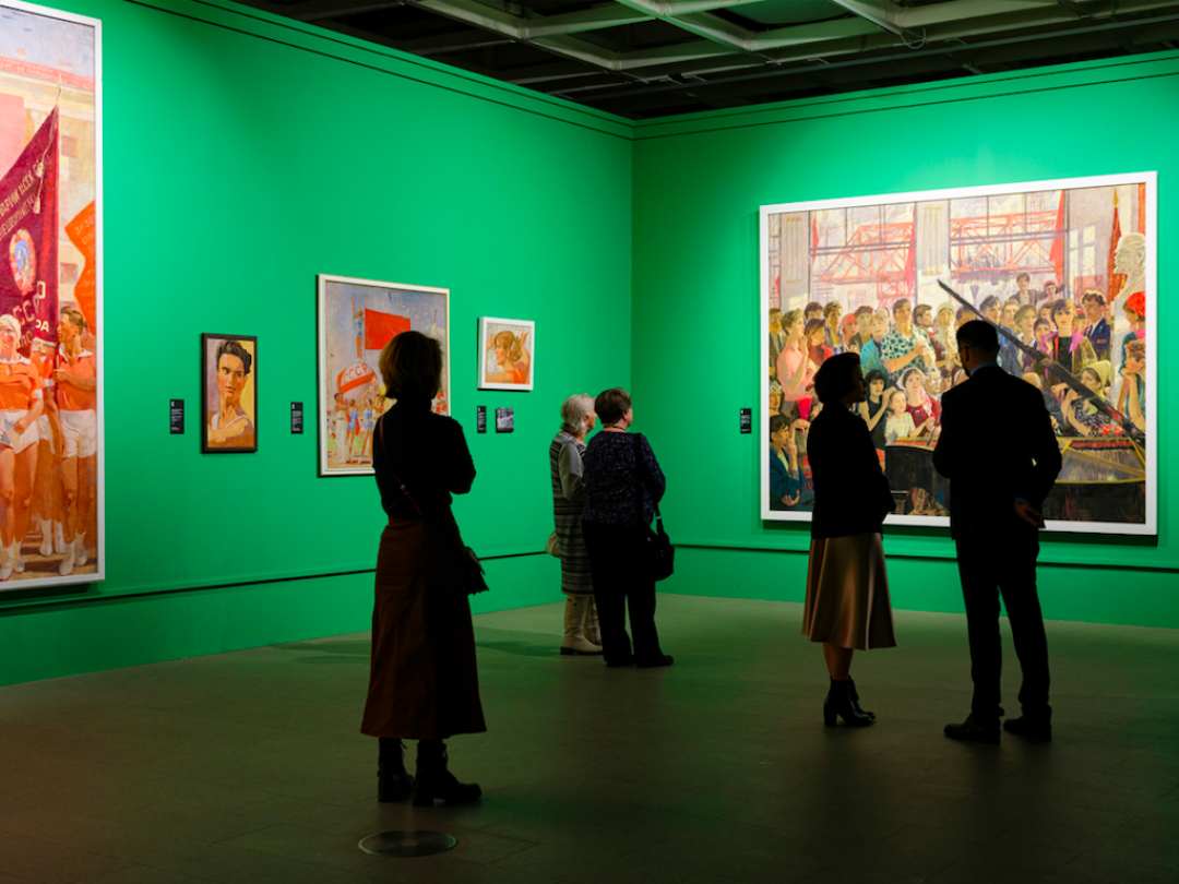 «Христос в темнице» мы сделали за три месяца. А вот над Дейнекой и Самохваловым работал не менее шести. Я закончил историю с Венецианской биеннале в мае (Горланов/Дружинина — архитекторы в Русском павильоне в 2019 году. — Прим.ред.) и сразу получил кураторские списки. Это захватило меня полностью, ничем другим я больше не мог заниматься. Хотя работа над выставкой к этому моменту шла уже больше года. И здесь, конечно, феноменальное чутье Михайловского, продумавшего многие пары картин настолько заранее, — это очень помогло. Ведь картины рассеяны по стране, увидеть их в комплексе отдельная задача: например, полотно «Стихи Маяковского» приехало из Армении, а «На женском собрании» — из Челябинска. Тут важно понимать, что Манеж — не музей, а выставочная площадка, поэтому кое-что из экспонатов получить было непросто: тут не работает практика музейных обменов. Но по какой-то причине всем было понятно, что эту выставку нужно делать, и почти никто не отказался. В Третьяковской галерее сняли и прислали нам весь зал Дейнеки, который они сформировали только год назад.