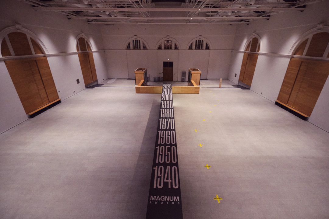 Манеж открывается первым из крупных институций и сразу большой выставкой «Иной взгляд. Портрет страны в объективы фотографов агентства Magnum», смонтированной еще на карантине. На двух этажах размещены более 250 работ, в том числе основателей агентства легендарных Роберта Капы и Анри Картье-Брессона, снимки единственного российского корреспондента Magnum Георгия Пинхасова, а также серия Нанны Хайтман о врачах московских больниц, которые боролись с эпидемией коронавируса весной этого года. От очереди в Мавзолей в 1947 году до предвыборной кампании Ельцина в 1996, от ленинградских перестроечных модниц до шаманов на берегу Енисея. Архитектура выставки — отдельный разговор: красные полы и зеркала превращают экспозиционные отсеки в магический лабиринт. Фото и комментарии куратора смотрите в материале «Собаки.ru», подготовленном во время монтажа.