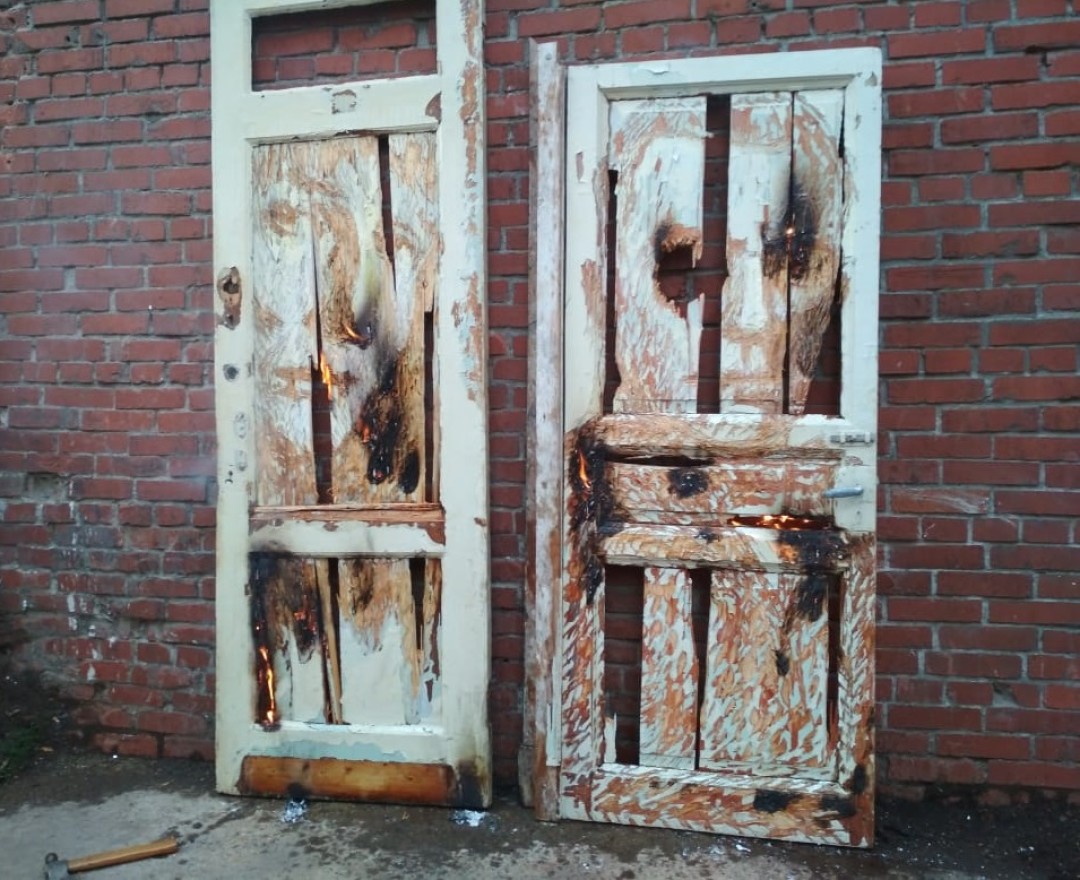 «6 дверей на выставке из моей коллекции, в том числе чердачные окошки, а остальное мы нашли у ребят из мастерской “Двери с помоек” — это энтузиасты своего дела, которые дают вещам вторую жизнь. Нестор Энгельке, сделавший двери с портретами, кстати, мой бывший студент, я давно хотел его привлечь. С моей подачи он начал не только «рубить», но и жечь», — объясняет Сергей. Дьявол — в деталях, как известно. Чтобы рассказать историю про талантливых людей, которые жили как в строчке Мандельштама «И всю ночь напролет жду гостей дорогих, шевеля кандалами цепочек дверных», можно обойтись без долгих патетичных абзацев, а поставить в конце экспозиции дверь. Опечатанную дверь.