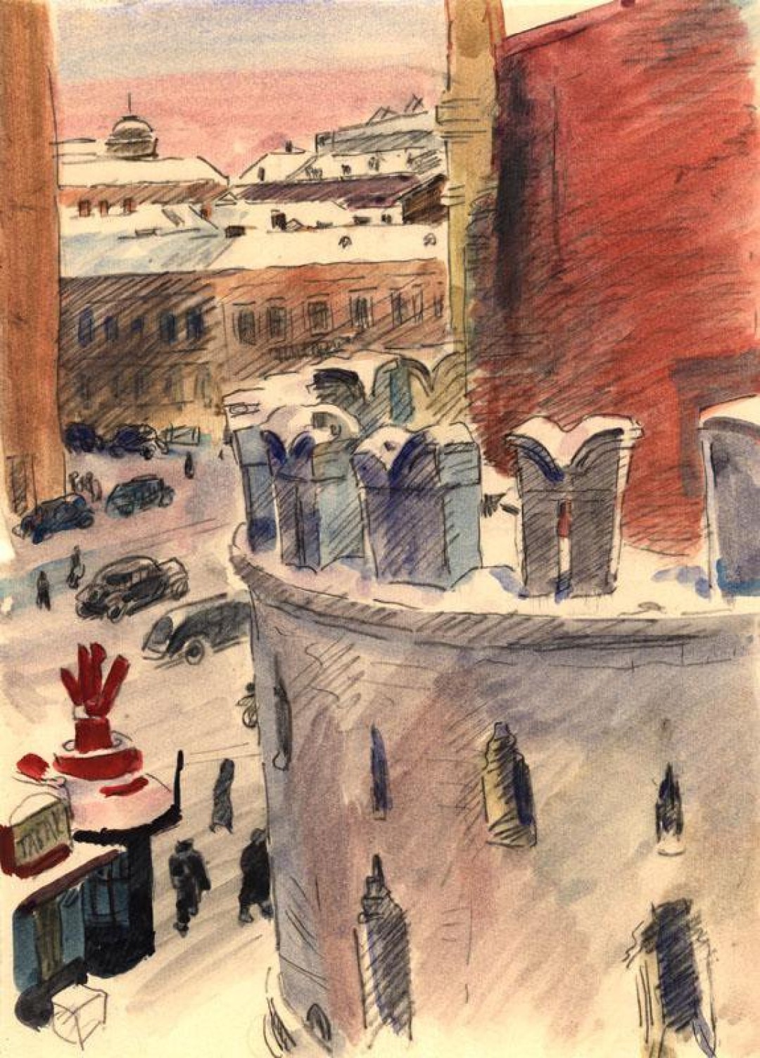 Структурированная как коридор «нехорошей» коммунальной квартиры эта хорошая выставка, помимо литературного и исторического слоя, имеет еще и мощный визуальный. Причем речь не только об архитектуре. Дело в том, что в собрании Музея Ахматовой есть русская живопись и графика, причем отличная: Николай Лансере, Александр Бенуа, Анна Остроумова-Лебедева, Зинаида Серебрякова, Валентин Серов. Кураторы и архитектор умело используют это преимущество, которое есть не у всех литературных музеев, — одна из комнат «Пятого измерения» наполнена видами Москвы и Ленинграда 1920–50-х, то есть тех лет, когда там жили Ахматова и Булгаков. Летняя Дворцовая площадь в розовой дымке Николая Торсы и его же зимняя Москва, а также портрет поэтессы 1928 года — тогда она уже переехала в Фонтанный дом, где обитала с гражданским мужем Николаем Пуниным и его семьей.