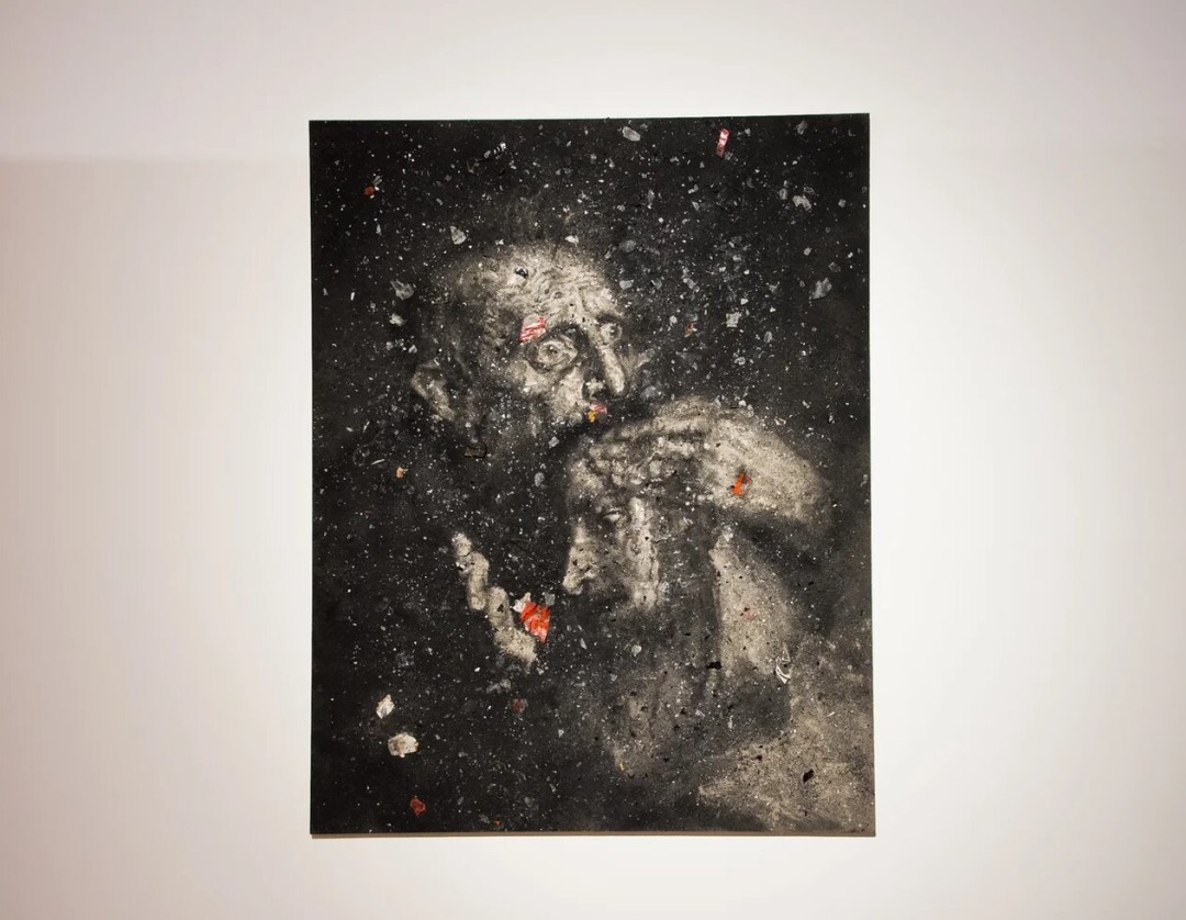 В Эрмитаже зритель увидит гигантские полотна из пепла на сюжеты самые неожиданные, соседство которых вызовет некоторое удивление. Тут советская и китайская компартии, и Иисус, и Ленин на демонстрации, и Мао Цзэдун, и Конфуций, и даже Иван Грозный, как на холсте Ильи Репина.
