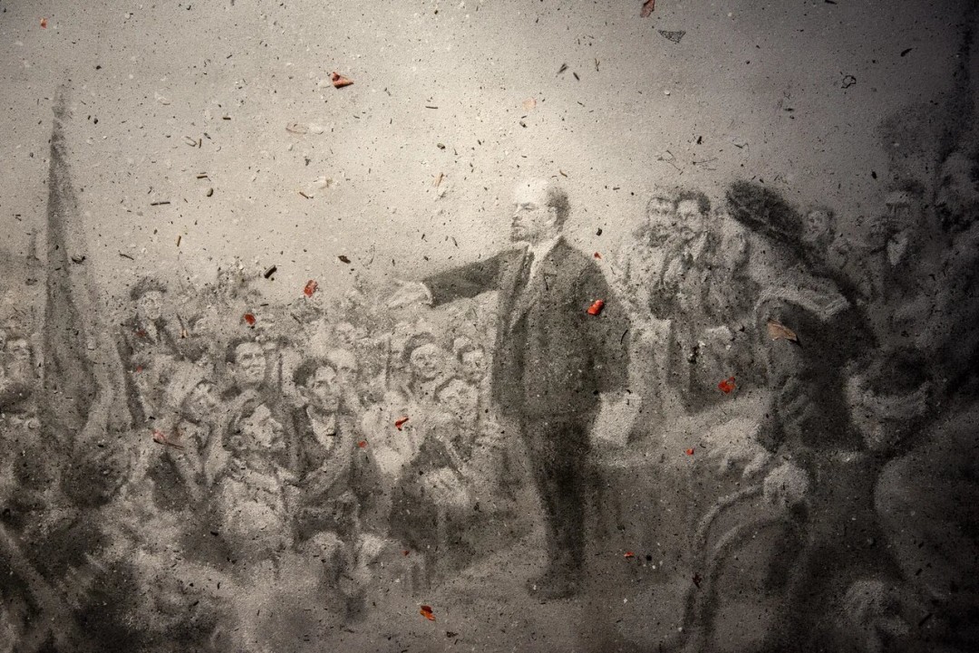 В Ваджраяне, буддийском течении, на обряды которого ссылается Чжан Хуань, сансара и нирвана едины, то есть освобождение приходит не после смерти, а является скорее состоянием, которое можно достичь. Поэтому работы Хуаня как будто отрицают идею конечности – и показывают это и своим масштабом, и длительностью создания; и в 2020 году Ленин снова провозглашает советскую власть, только теперь уже из пепла, и мы смотрим на это так же – через пепельную пелену.