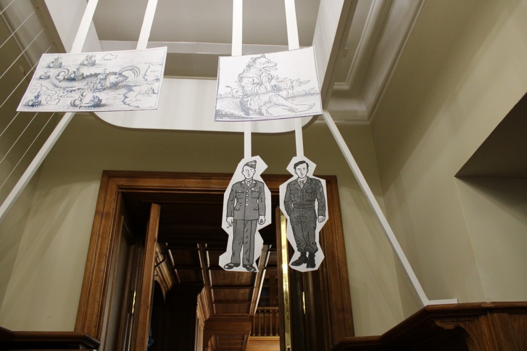 Картинки на потолке и слова на стекле — расчленить комикс придумал театральный художник, руководитель Театра Поколений Данила Корогодский. «Война Алана» — единственный не автобиографический комикс в обойме «Бумфеста - 2020». В основу комикса легли истории американского солдата Алана Коупа, прошедшего Вторую мировую войну. Гибер записывал их 12 лет. Это личные, бытовые рассказы о встречах и расставаниях, о нелепостях и улыбках, и о грусти, конечно. Данила Корогодский разделил картинки и текст, а получилось так, будто бы снял экранизацию. Комиксу отдали два помещения: коридор и комнату за ним. В коридоре к потолку подвешены картинки — и смотрятся они как видеоряд, пока идешь, задрав голову, а в комнате — слова на стеклах стеллажей. Они висят в воздухе, как рассказы Алана. Пока читаешь их — вспоминаешь картинки, пока идешь назад — закрепляешь прочитанное. Кстати, внутри книги вклеен листок с ссылкой на музыкальный альбом «Музыка Алана». Этот альбом выпустил Эмманюэль Гибер вместе с коллективом Vision Fugitive (La Musique d'Alan).