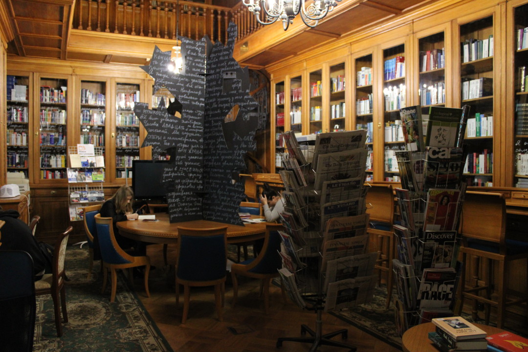 Предлагаю исследовать фантазии художников, как исследуют новые земли — прохождение понадобится вам, если вы (как и я!) ничего не понимаете в комиксах, а в библиотеке были в последний раз в школе. В первую очередь, зарегистрируйтесь. Затем приходите в Маяковку в выбранное время, и обязательно возьмите карту. Без нее вы не поймете ничего. Не пытайтесь ни с кем говорить. Сделайте серьезный вид — вы пришли не меньше чем за Толстым, просто брать его будете в соседнем зале. Берем карту, идем на второй этаж. Нужные вам комнаты пронумерованы. Первая - в коридоре справа. Заходим.