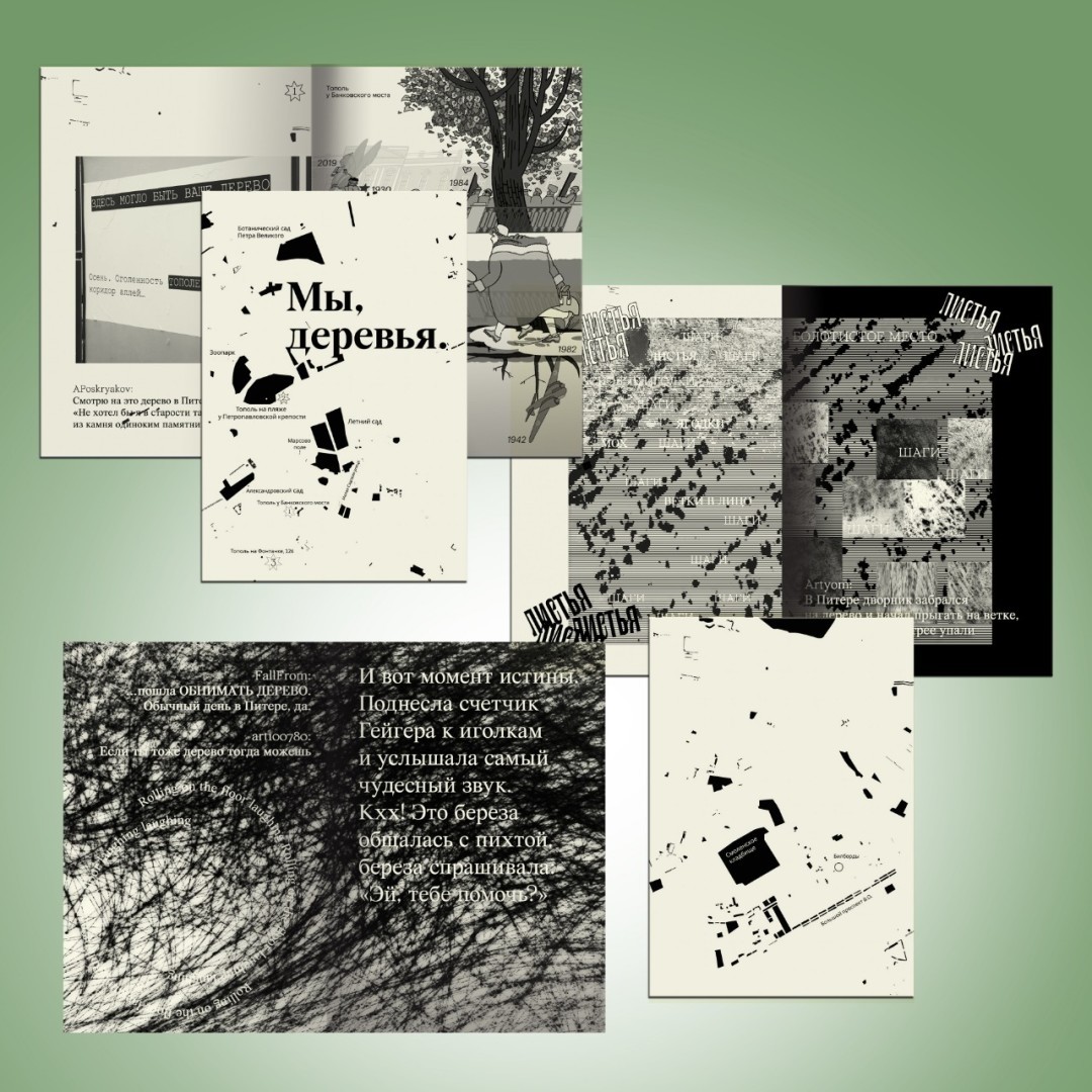 Через open call отобрали три зина: «+ Смещенная активность -» о жизни и человеческих отношениях в условиях ограниченного пространства, экологический «Мы, деревья», подготовленный совместно с Марией Тиника, создательницей инициативной группы «Деревья Петербурга» и «Карты деревьев», а также «Куда приводит прогулка» — как реакция на апрельский запрет гулять в парках и на детских площадках. Почему зины? В эпоху тотальной диджитализаци и TikTok'а, это медиа из 1970–90-х выходит на вторую волну популярности: в формате самиздата делают даже фэшн-лукбуки: от Канье Уэста до «Богемы Ленинград». Важно: каждый куратор и художники зинов получили гонорар — «новая этика» в действии. Четвертый зин, «Неответы», создали (без гонораров, но в ходе воркшопов!) студенты вузов Петербурга: взгляд на современные стереотипы мышления и коммуникации, и запрос на то, что она скоро изменится. Все три зина разобрали в первые недели после выпуска. Последний — четвертый — скоро появится на сайте форума.