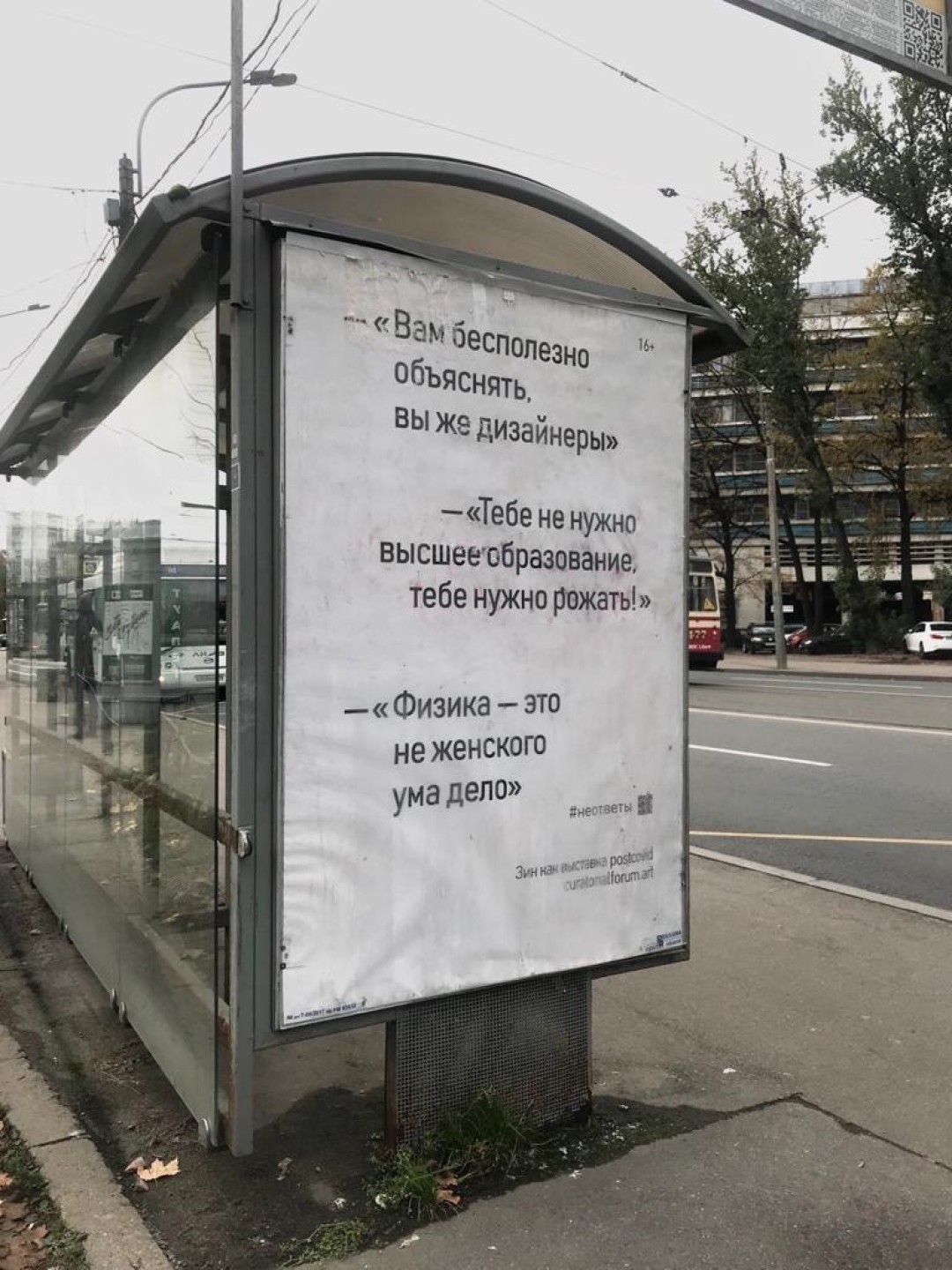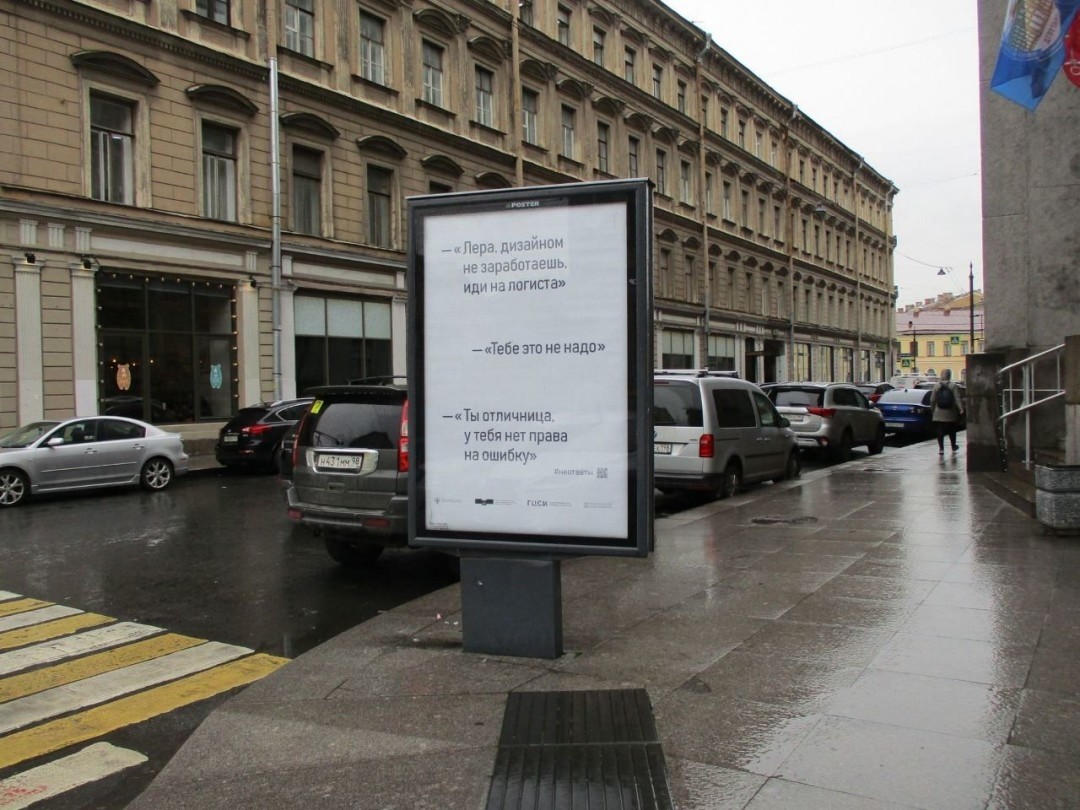 Важно, что этот проект придумали сами студенты — мы только помогли им его воплотить. Появление таких плакатов на улицах города — это способ привлечь внимание к проблемам, с которыми многие сталкиваются в процессе получения образования, в частности со стереотипами о выбранной профессии, неприятием выбора со стороны родителей, родственников, друзей («Дизайном не заработаешь») или навязывания заранее определенного шаблона поведения и навешивания ярлыков («Ты отличница, у тебя нет права на ошибку»), а также к частой ситуации, когда молодых людей лишают субъектности и права личного выбора («Тебе это не надо»). Кроме того — это выход феминистской повестки в городское пространство («Физика — не женского ума дело» и «Тебе не нужно высшее образование, тебе нужно рожать»). Кстати, проект посвящен не только гуманитарному образованию, мы говорили об образовательных процессах как важнейшей части социального устройства.
