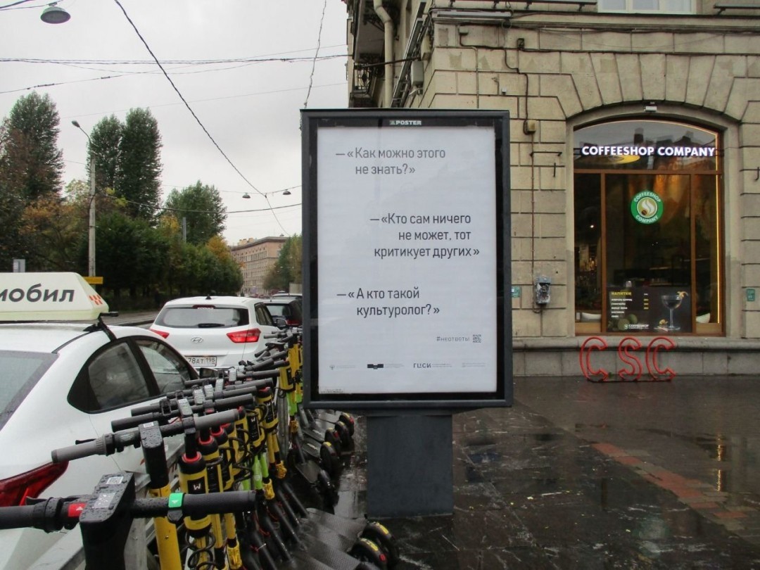 Выход каждого зина сопровождается «рекламой» — в центре города на билбордах появляются три плаката с работами художников или выдержками из текстов самиздатов. Самый радикальный кампейн получился у студенческого зина «Неответы»: рядом с тремя петербургскими университетами появились «типичные» фразы, которые слышат в свой адрес учащиеся современных вузов (особенно творческих и гуманитарных). «Вам бесполезно объяснять, вы же дизайнер», «А кто такой культуролог?», «Лера, дизайнером не заработаешь, иди на логиста». Фото троллинга в формате интервенций вирусно разошлись по студенческим группам в соцсетях, а затем и по федеральным медиа и телеграм-каналам. При этом не все сразу поняли, что концептуалистскую выходку поддержала государственная институция.