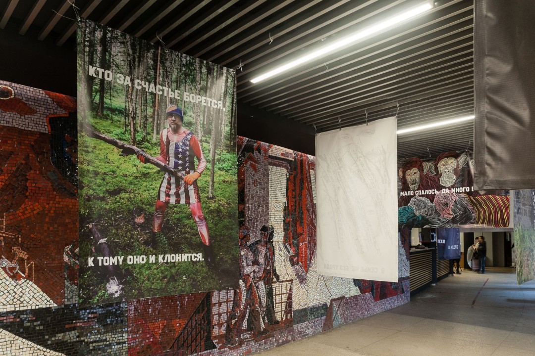 В проекте «Трансгаза» создан настоящий театр времени: художники творческого объединения PARAZIT вспоминают о нон-конформистах, которые выставлялись в ДК им. Газа в 1970-е и 1980-е, и пропускают их историю через современность. Эта рефлексия принимает неожиданную форму и становится мемом из фотоизображений, пословиц и поговорок.