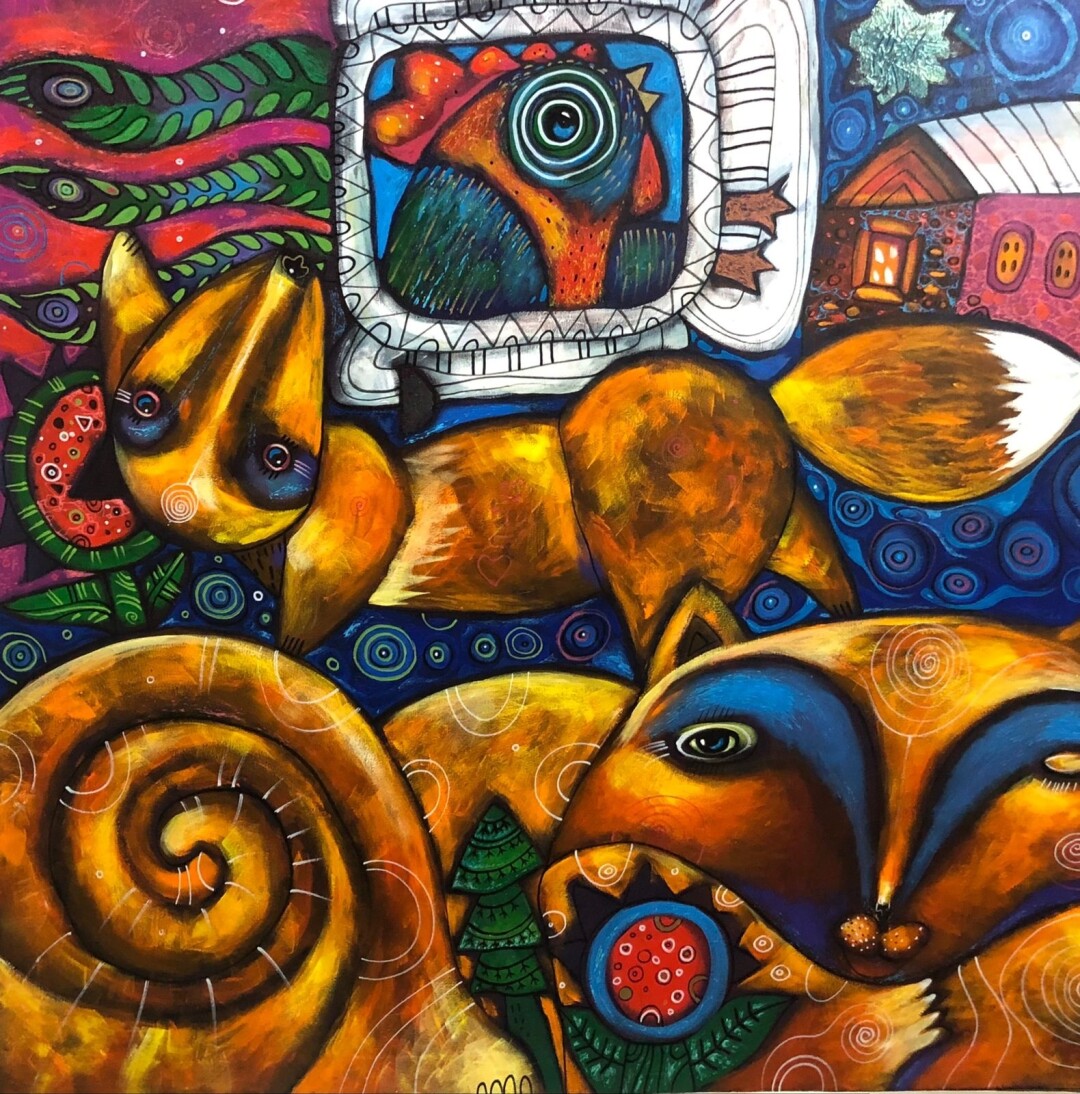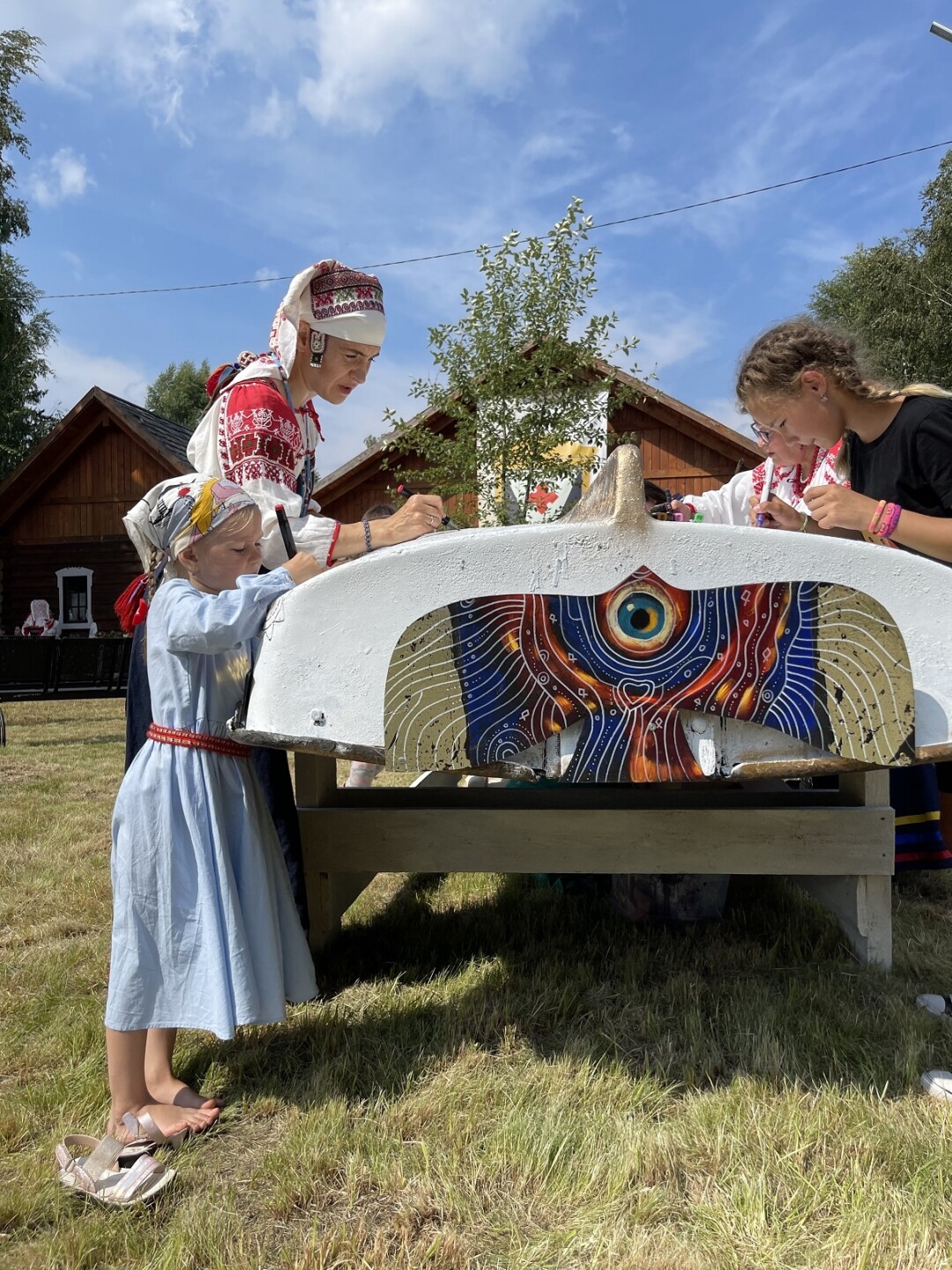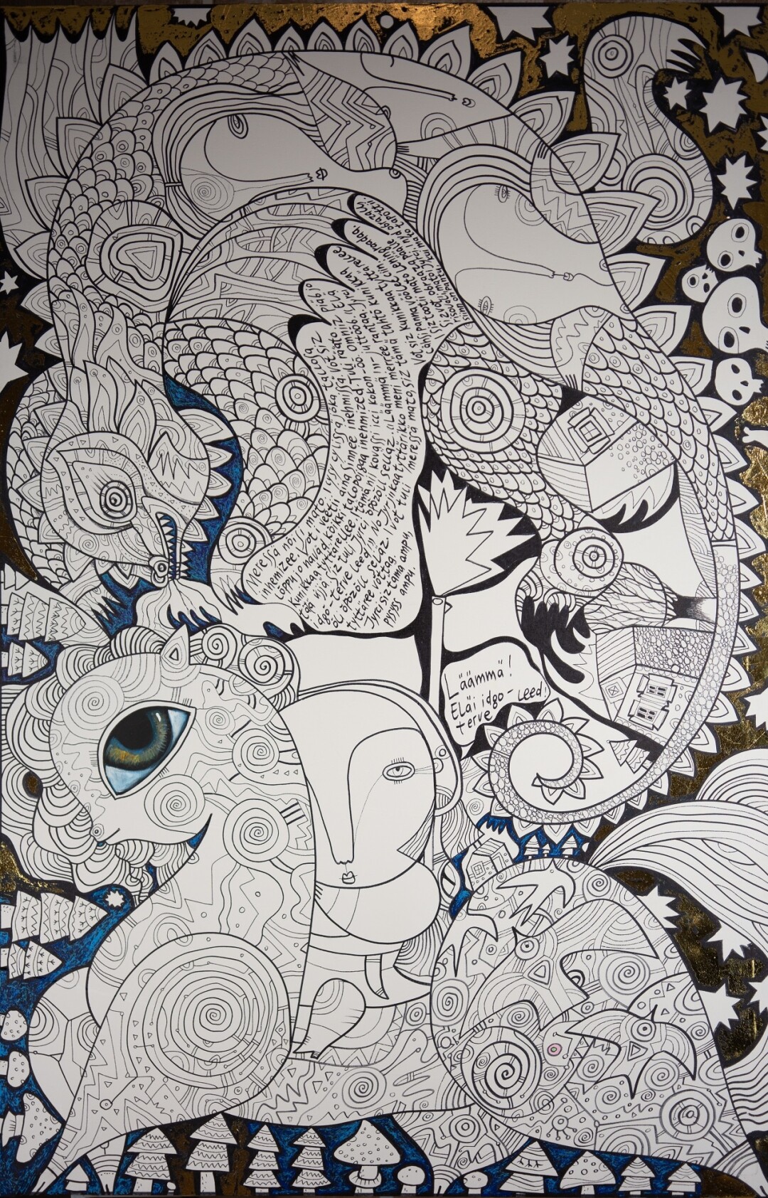 Я художник-передвижник, работаю в разных масштабах и местах, в том числе и в северных городах и деревнях. В деревне Лужицы живет водь — небольшой, но гордый народ, который сохраняет свою идентичность, свой язык, свои обычаи. Их осталось чуть больше 30 человек, а они столько всего делают для сохранения своей культуры: восстанавливают музей, устраивают фестивали, сохранили традиции вожской складчины. Приезжая к ним в музей, я словно оказываюсь дома — они очень радушные, всегда готовы поделиться теплом и любовью. Этого так не хватает в больших городах. Я ценю и люблю вожан, люблю их деревни, люблю их фольклор. Сказки всегда были для меня важны, а сказки народа водь меня захватили на долгое время, уже более полугода я пишу и пишу без остановки, и картины, и раскраски. Мне приятно осознавать свою причастность к этой культуре, приятно знать, что она продолжается. Припадая к истокам, подпитываться глубинными вещами, культурой ее носителей — это важно.