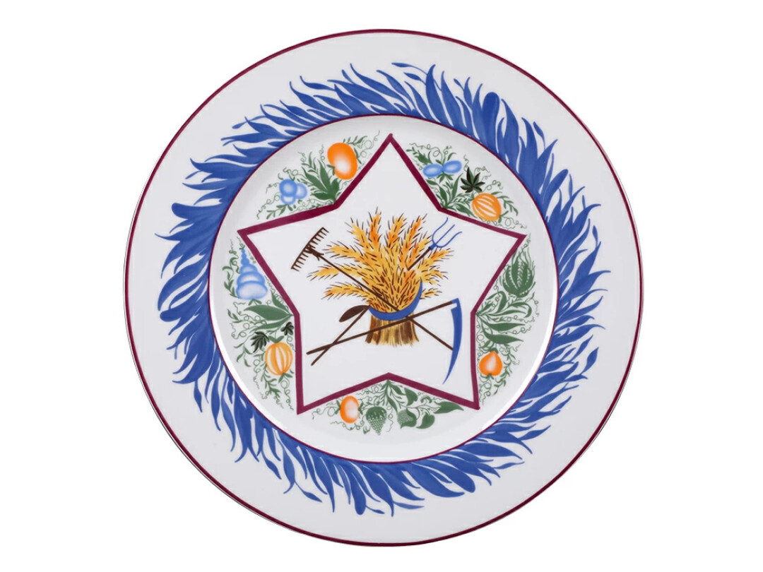 Чашки, блюдца и сервизы «Императорского фарфорового завода» — всегда беспроигрышный вариант подарка на любые праздники: от юбилеев, свадеб и Дня взятия Бастилии до, конечно, Нового года. Любителям мира искусства и «Мира искусства» предлагаем сразу кликать на раздела сайта «ИФЗ» «Коллекционеру». Там среди фигурок «Милосердие», «Ночь» и «Матрос со знаменем» притаилась, как дракон в фильме Энга Ли, тарелка «Большая звезда со снопом». Это реплика, воссозданная по оригиналу 1921 года из коллекции Эрмитажа. Автором композиции для агитационного фарфора стал худрук завода с 1918-го Сергей Чехонин (ученик Репина, среди прочего помогавший Врубелю с майоликами).