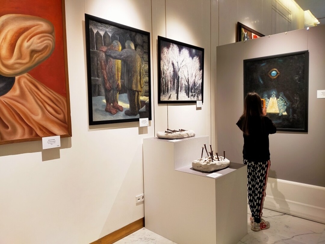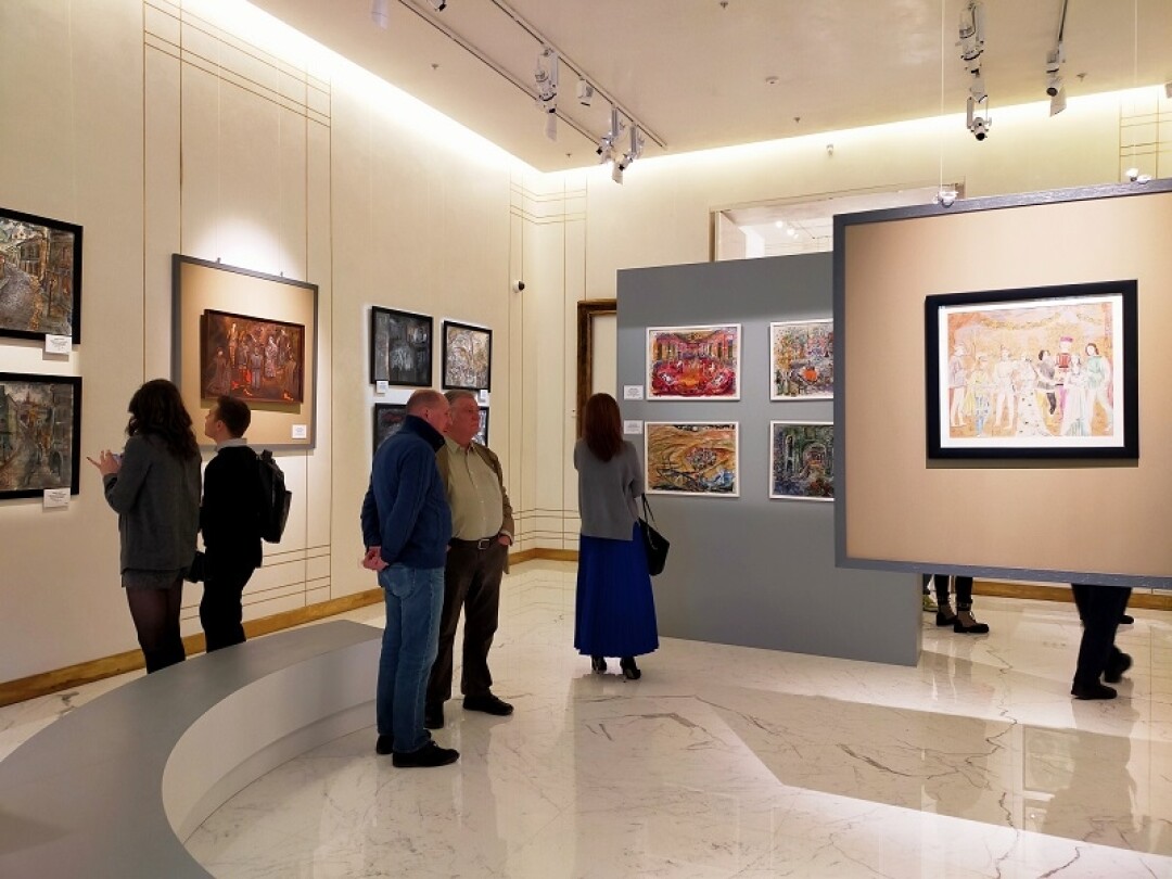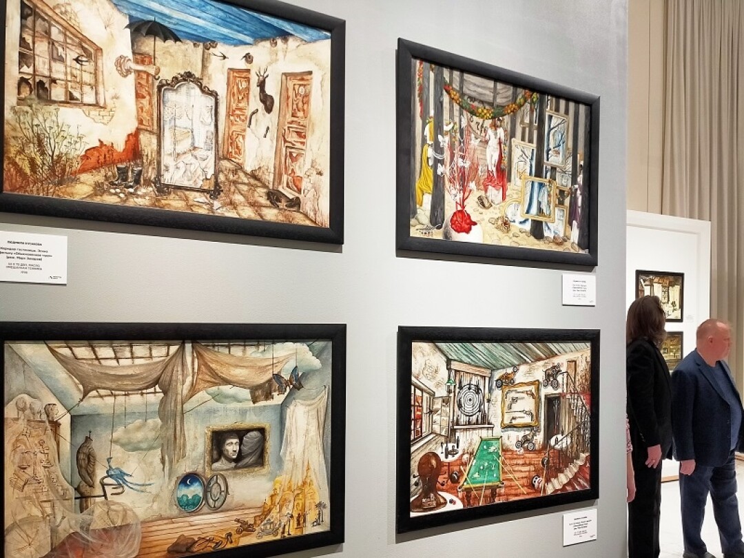 Подобные работы составили основной объем экспозиции, в которую также вошли эскизы к театральным постановкам, живописные полотна, графика и скульптурные арт-объекты. При этом на экранах в залах транслируются кадры, снятые на даче художников, отчетливо напоминающей тот самый «Дом волшебника» из «Обыкновенного чуда».