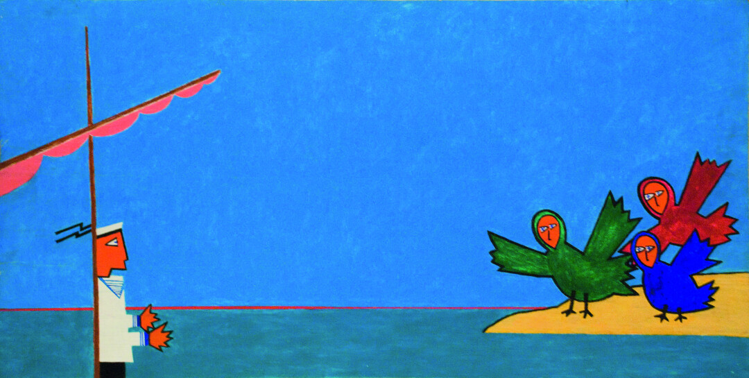 Живописец Андрей Крисанов входил в объединение «Новые художники» Тимура Новикова, участвовал как музыкант в «Поп-механике» Сергея Курехина и играл на бас-гитаре в группе «Кино». Переехав из Новороссийска в Ленинград в 1983-м, он быстро стал важным актором андеграундной культуры города. А яркие образы в его работах в духе нью-йоркцев Кита Харинга и Жана-Мишеля Баскии повлияли в том числне на квадратноголовых героев и ироничные сюжеты рисунков Виктора Цоя.