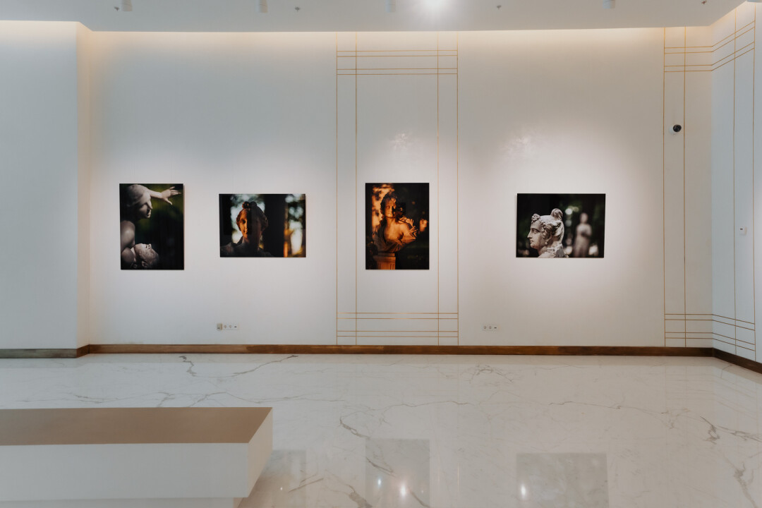В галерее шоу-пространства представлена серия черно-белых и цветных фотоснимков с изображением подлинных фигур Летнего сада, привезенных из Италии в начале XVIII века.