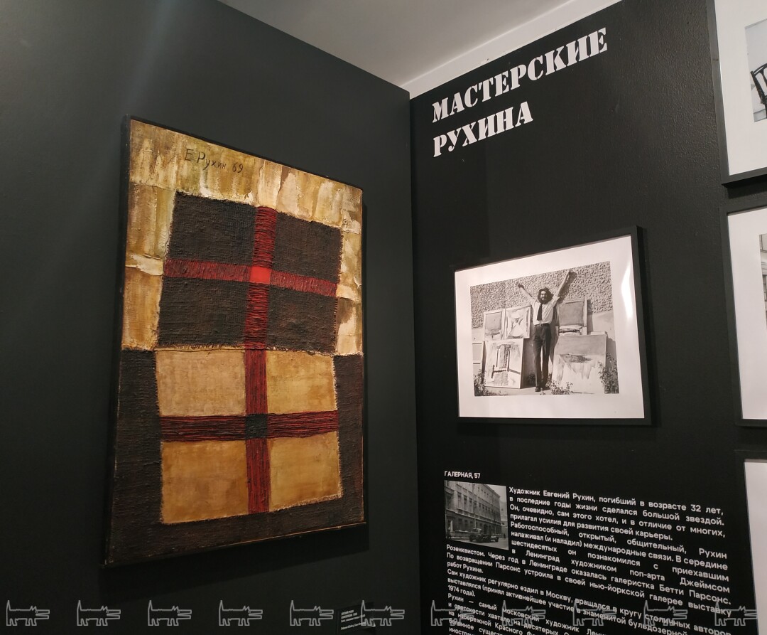 Например, рассказывают об экспозициях-сенсациях в ДК им. Газа (1974) и ДК «Невский» (1975), столовой №14 (в народе — «Аббатская дорога» в честь Abbey Road, камерный уголок группы «Аквариум» в пику «Сайгону»), мастерских Евгения Рухина (в 32 года трагически погиб при пожаре) и Евгения Михнова-Войтенко (неподалеку от нее Довлатов встретил будущую жену Елену), квартирах поэта Роальда Мандельштама (его не стало в 29) и художницы Герты Неменовой, а также фотовыставке «Под парашютом» (1974), прошедшей в комнате настоящего культуртрегера эпохи Константина Кузьминского.