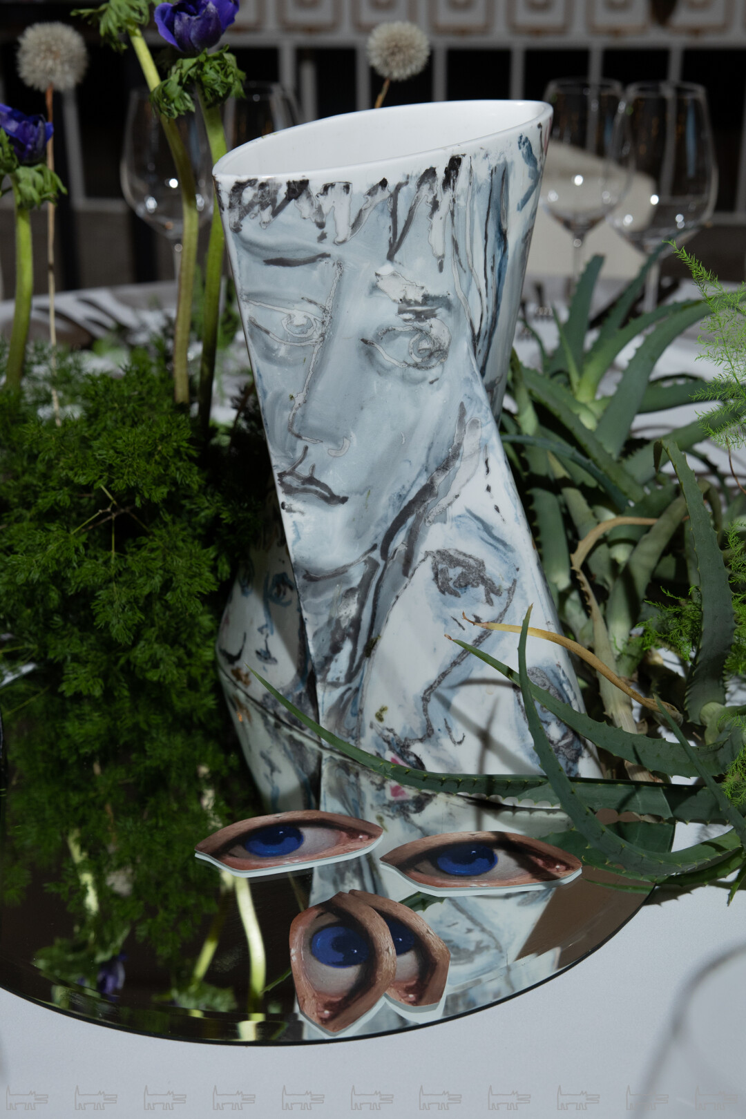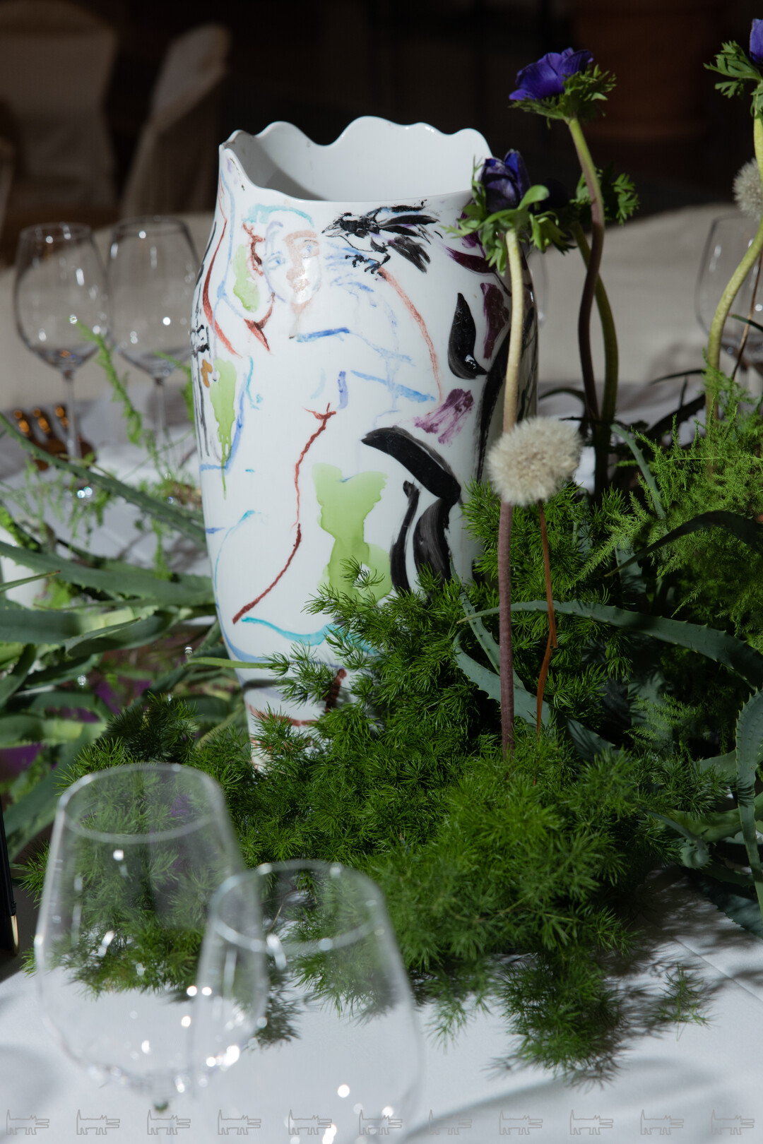 За фарфор и керамику отвечали художник Александр Траугот — лауреат премии «ТОП50. Самые знаменитые люди Петербурга» — 2023 в номинации «Искусство», и его супруга — керамист, реставратор Элизабет де Треал де Кинси-Траугот. Александр — без преувеличения легенда Петербурга, за его графикой, акварелями и фарфором охотятся фанаты и коллекционеры.