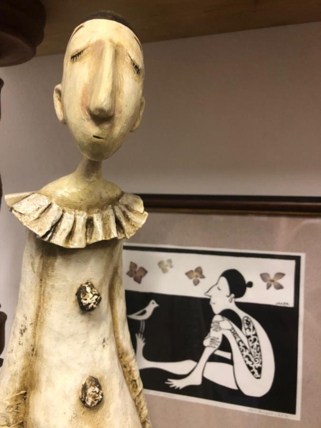 Роман создал за свою жизнь множество необычных, часто сказочных образов, но Пьеро был, пожалуй, одним из самых любимых его героев. Сохранилось немало карандашных набросков этого грустного образа. Он воплощен в графике, папье-маше, в настенных панно, в фотографиях, в бронзе и даже в березовых пеньках. Пьеро оказывается связующим звеном между временем сегодняшним и Серебряным веком. И потому неслучайно выбрана для этой выставки Коломна, где Роман Шустров прожил 17 лет, где родилась и выросла Мария Касьяненко.