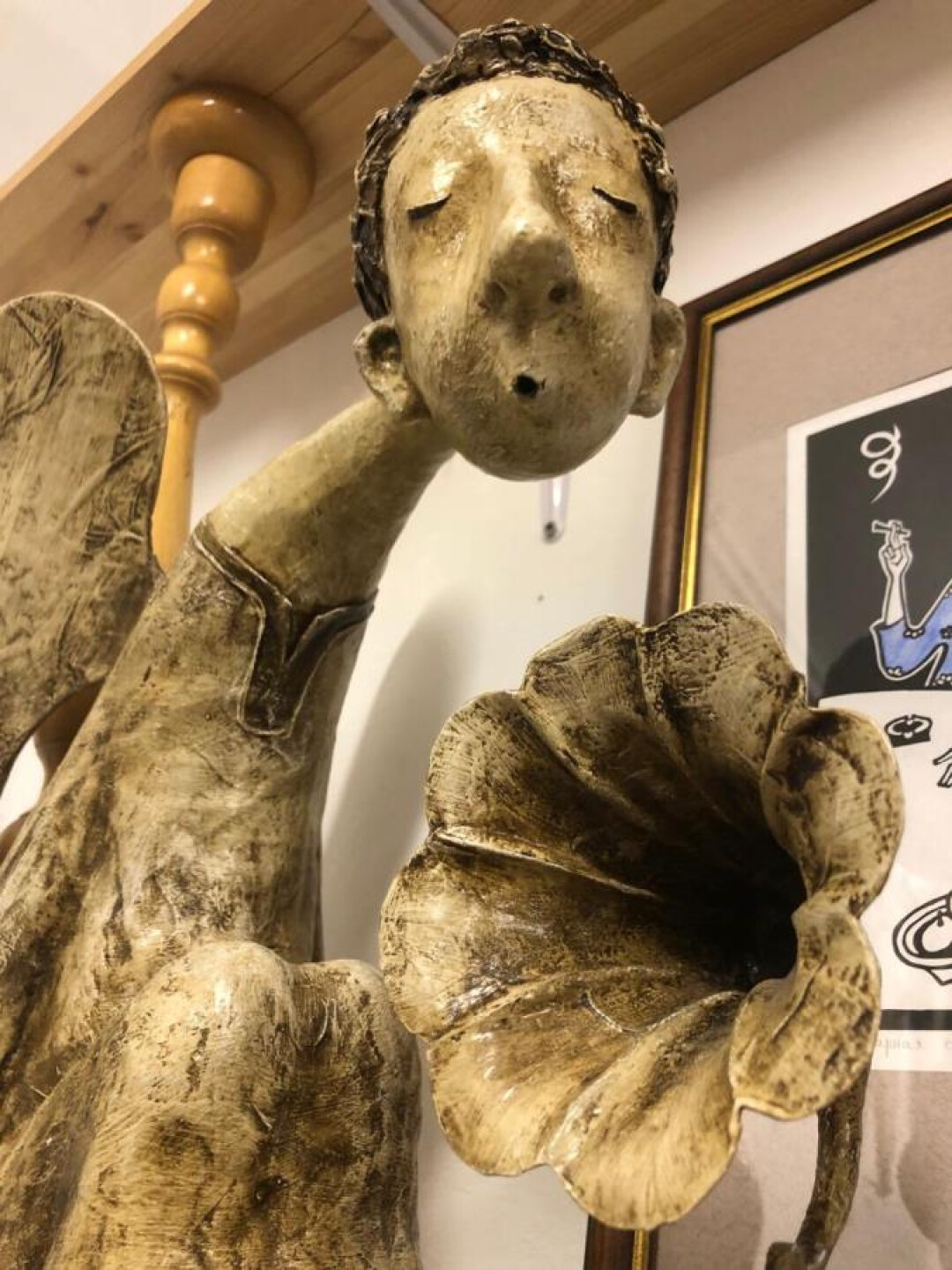 В экспозицию выставки войдут скульптуры из дерева и папье-маше, картины, графика, маски и игрушки. Произведения предоставили на выставку частный Музей Петербургских ангелов, открытый в память супругов-художников, а также петербургские коллекционеры Александр Левин и Николай Сердечный.