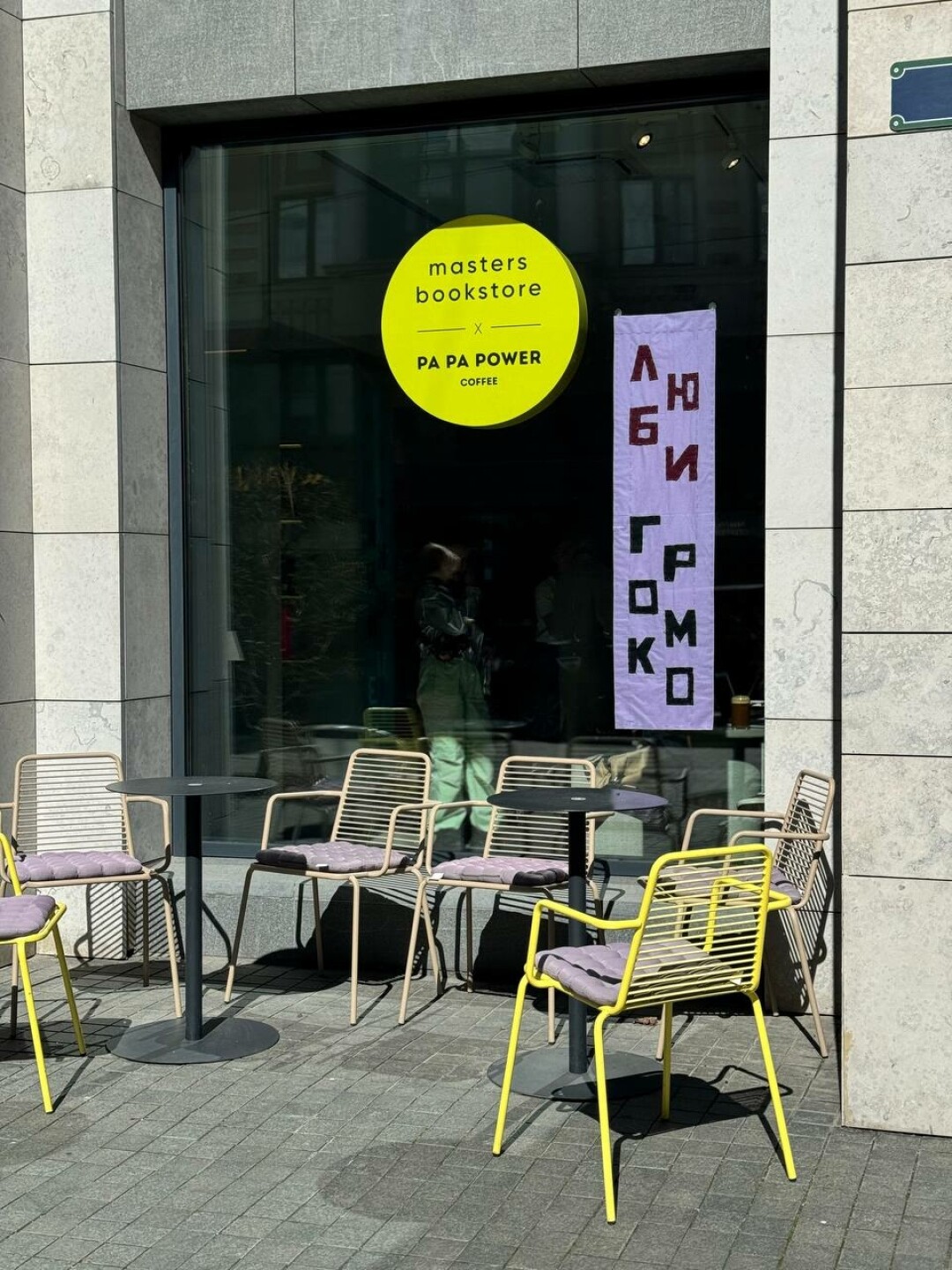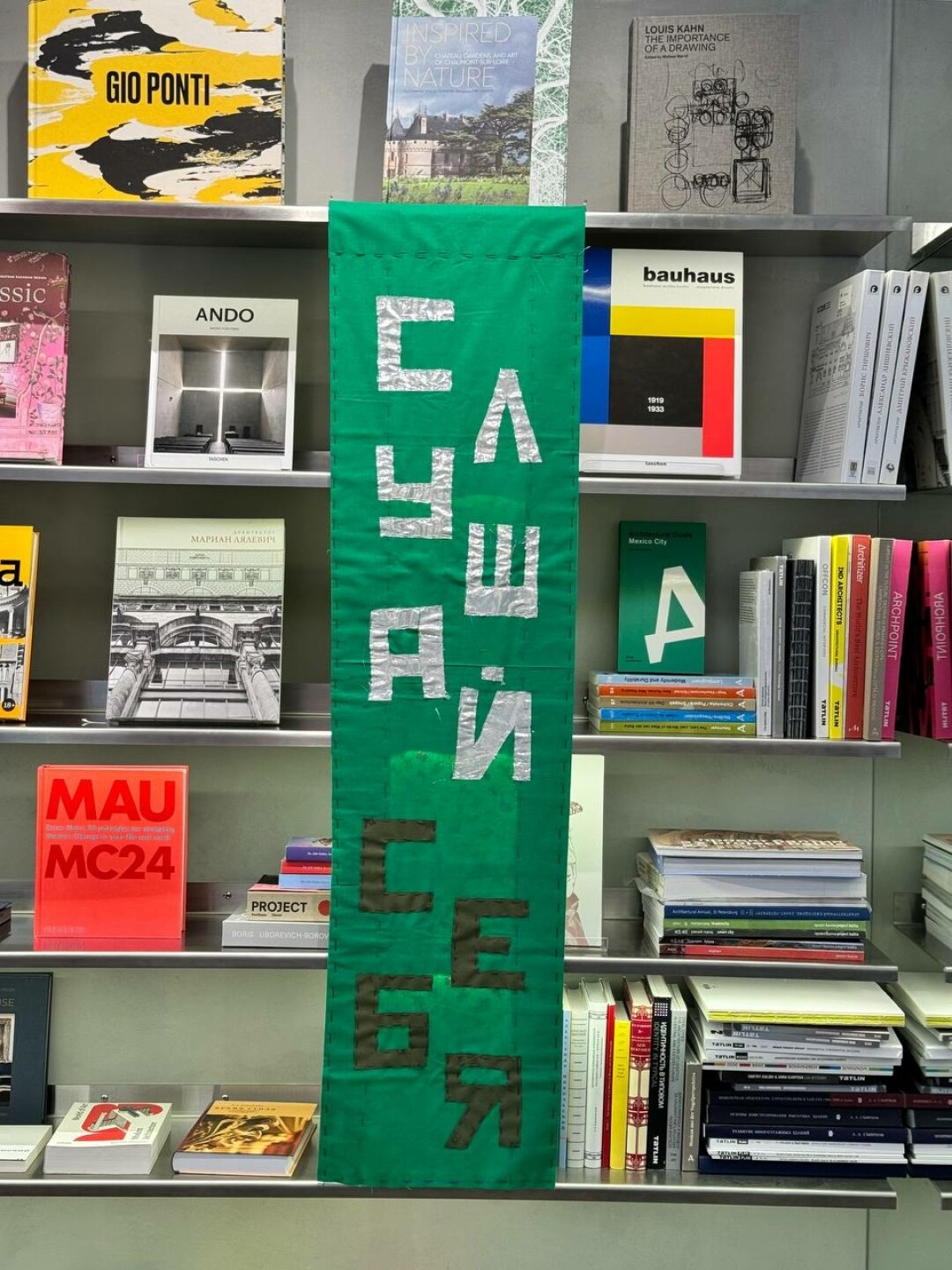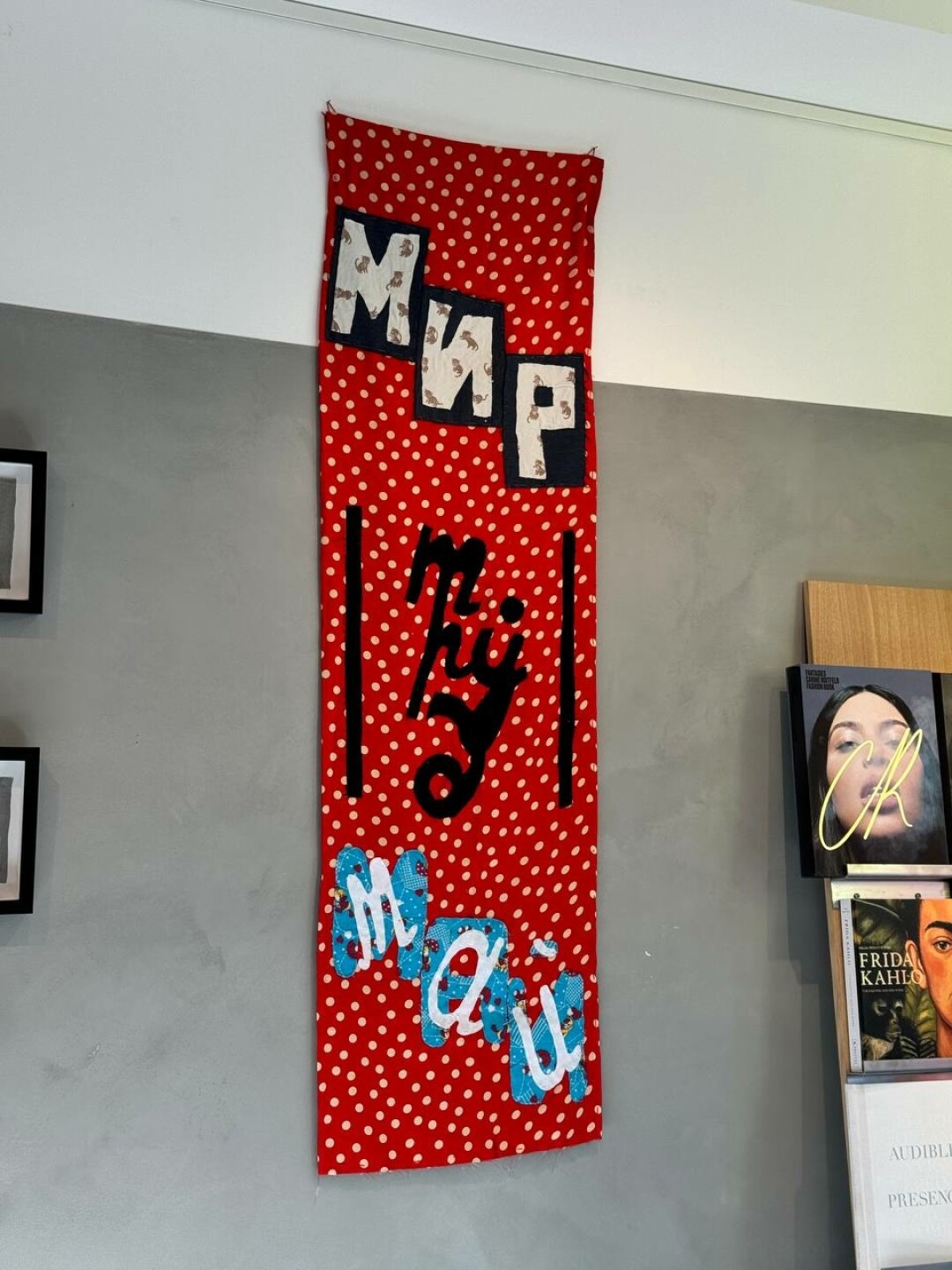 «Люби и обни-май», «Дурью не май-ся, любовью зани-май-ся» и «Мир, труд, май»: такими утверждающими слоганами от петербургского художника украшены залы книжного Masters bookstore на «Левашовском Хлебозаводе» до конца мая.